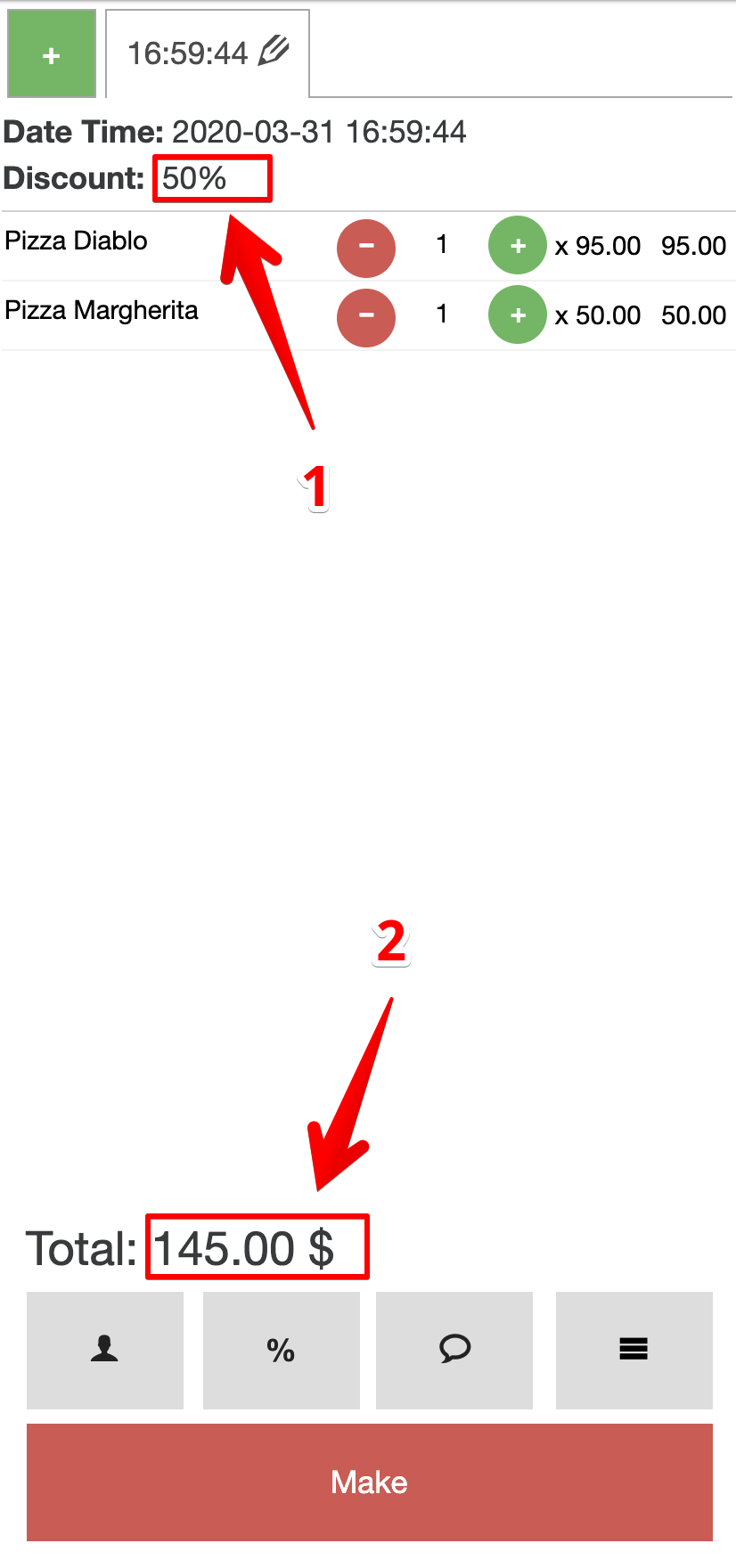 - Sol alt köşede % ‘yi tıklayın ve gerekli “İndirim” i seçin