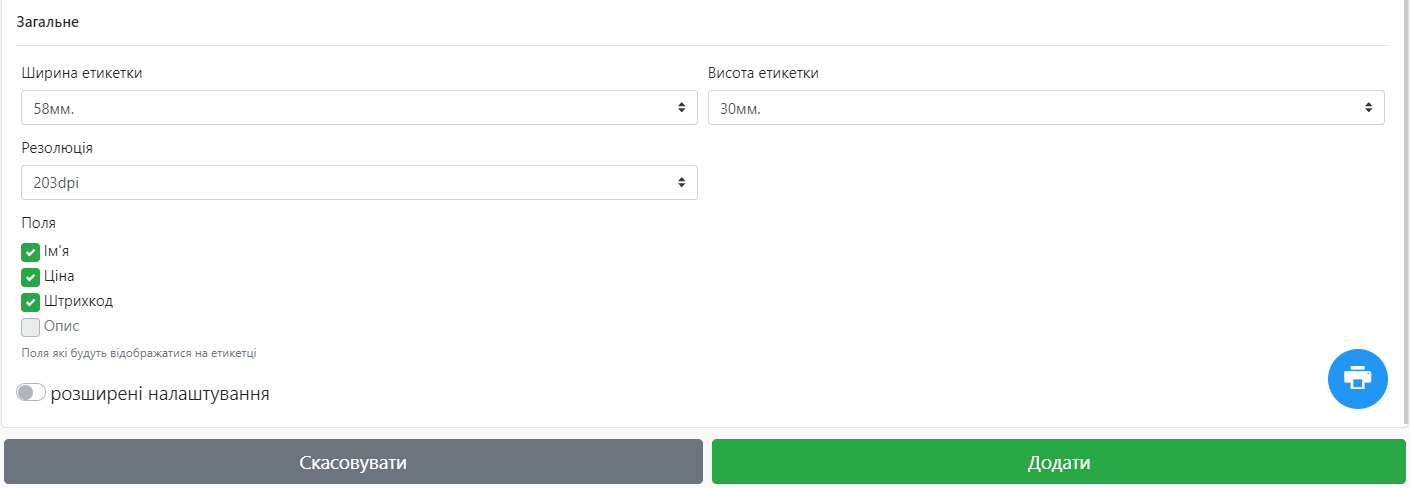 ☝🏼 Після додавання принтера у вас активується друкування етикеток в розділі Товари