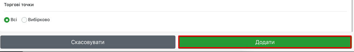 - У розділі ‘Торгові точки’ – вибираєте з яких точок будуть приходити повідомлення, якщо з усіх – вибираєте ‘Всі’