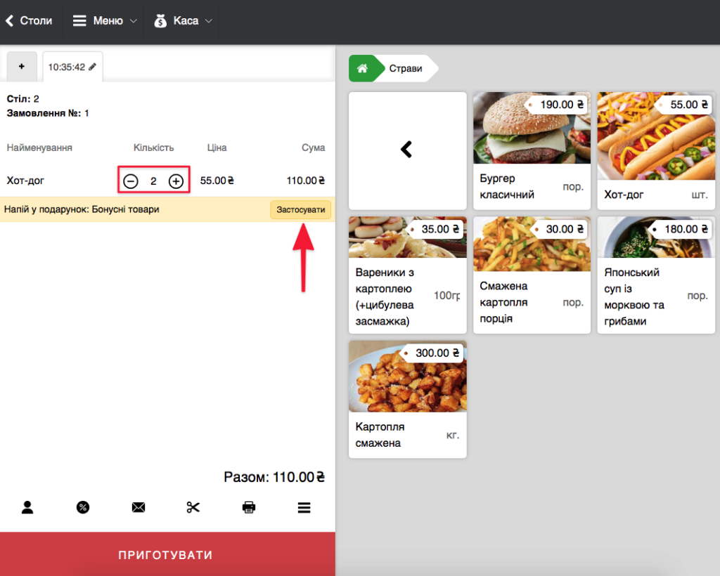 Приклад роботи акції у POS-терміналі