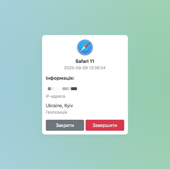 - IP-адреса (для перегляду натисніть на потрібну сесію)