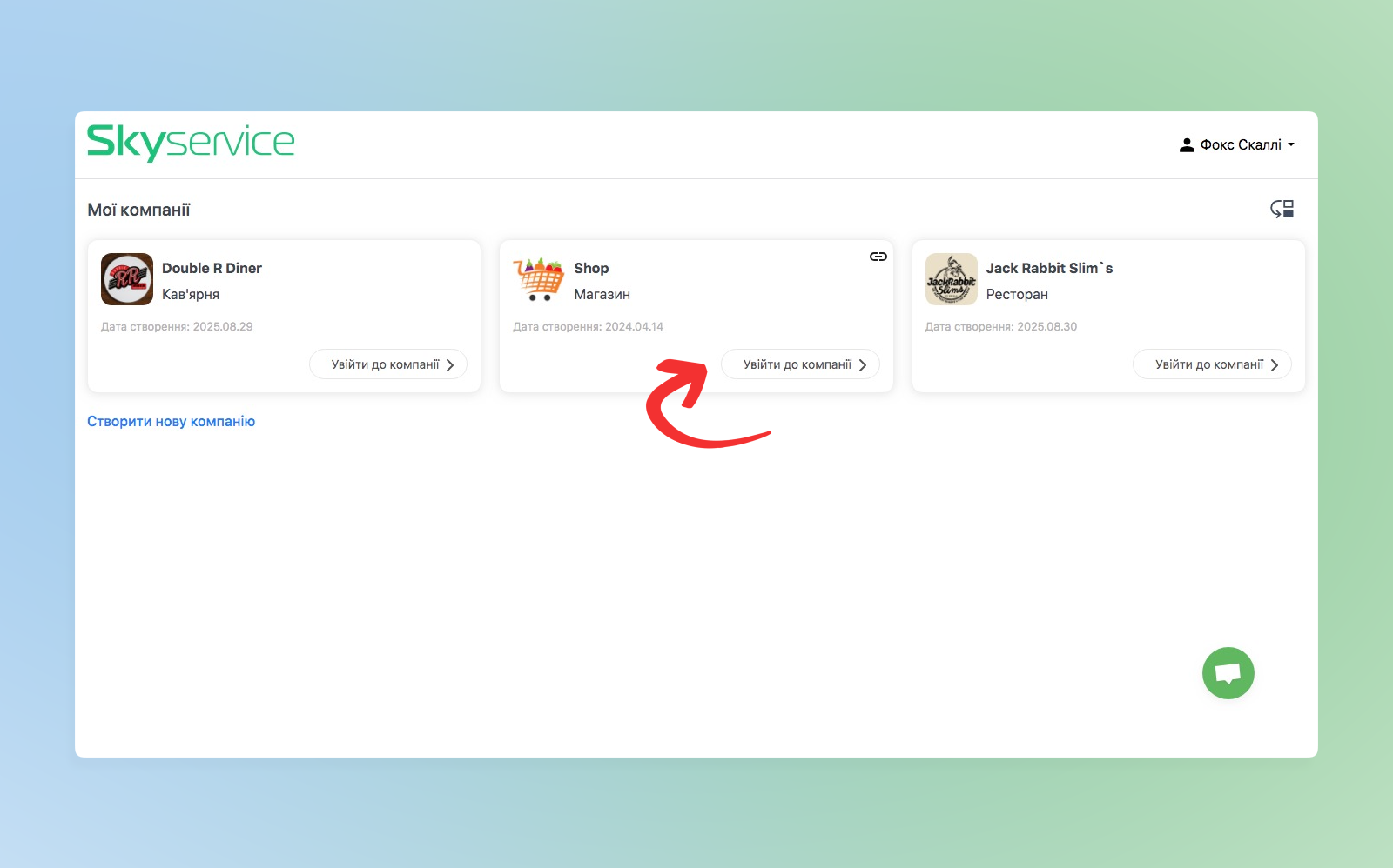- Оберіть компанію та натисніть Увійти до компанії