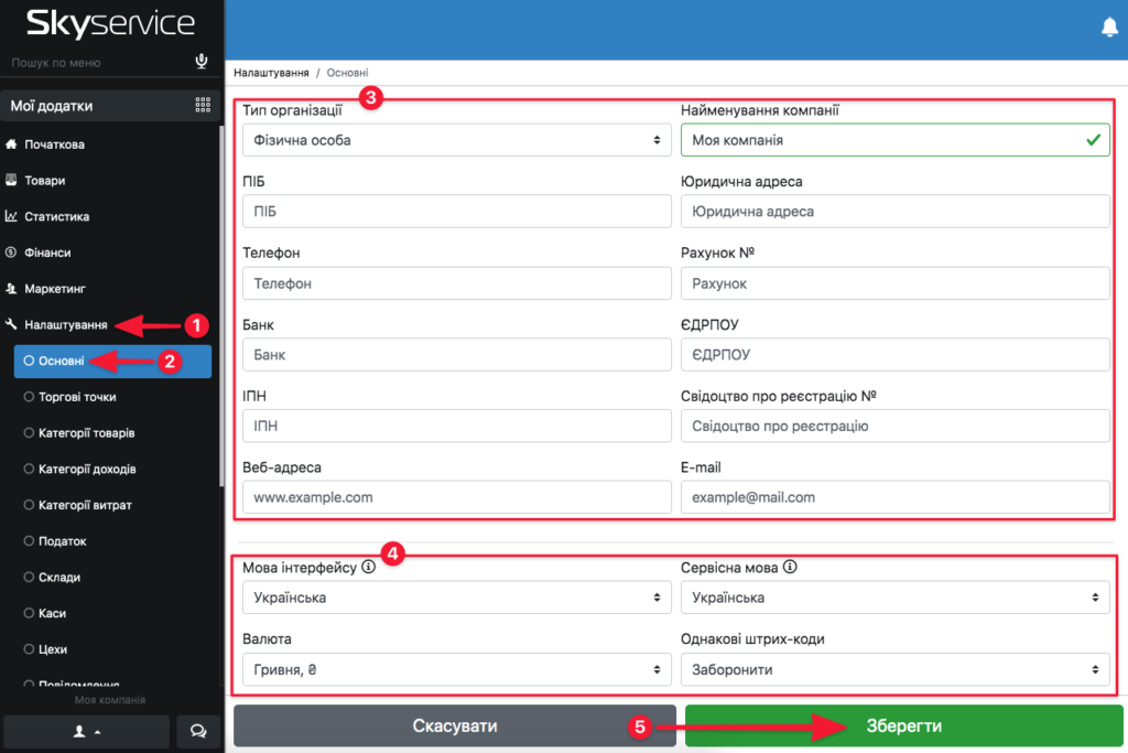 - Введіть найменування компанії/закладу