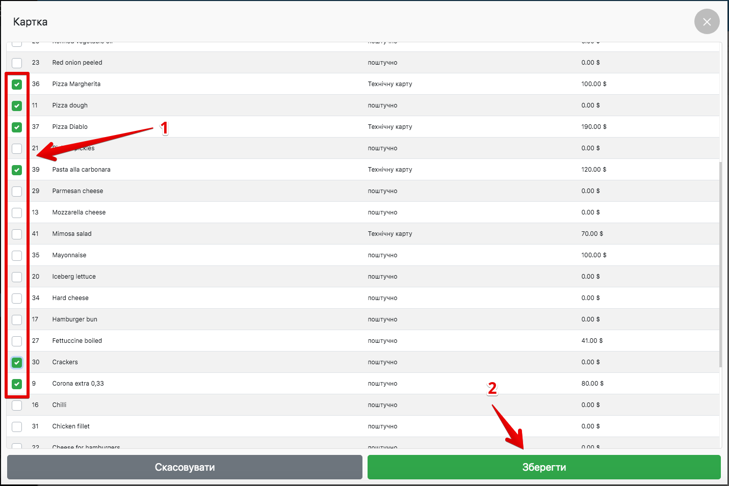 - У POS-терміналі на обраній Касі додайте товари у замовлення