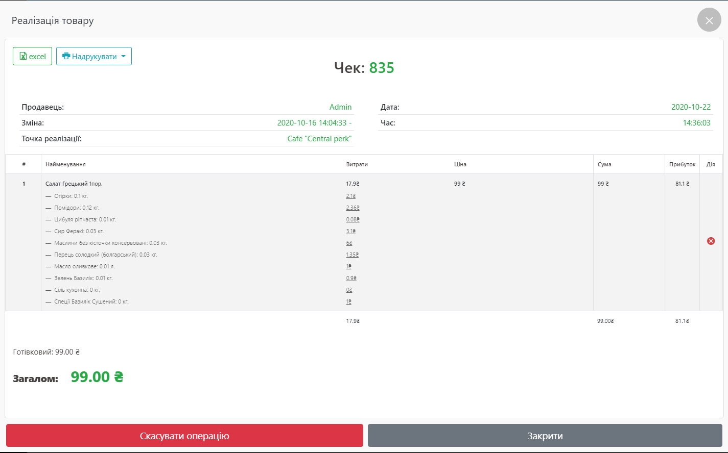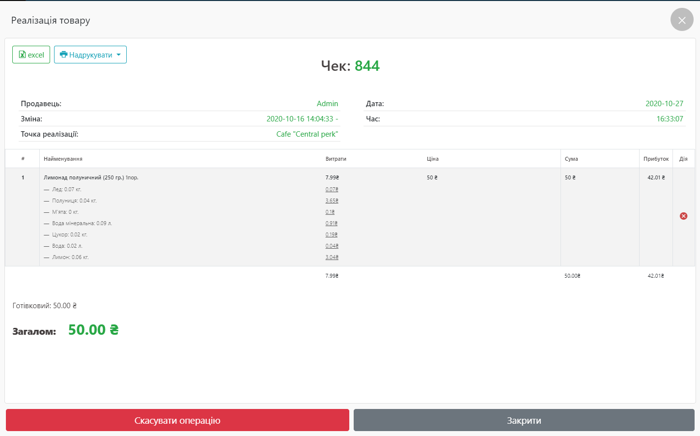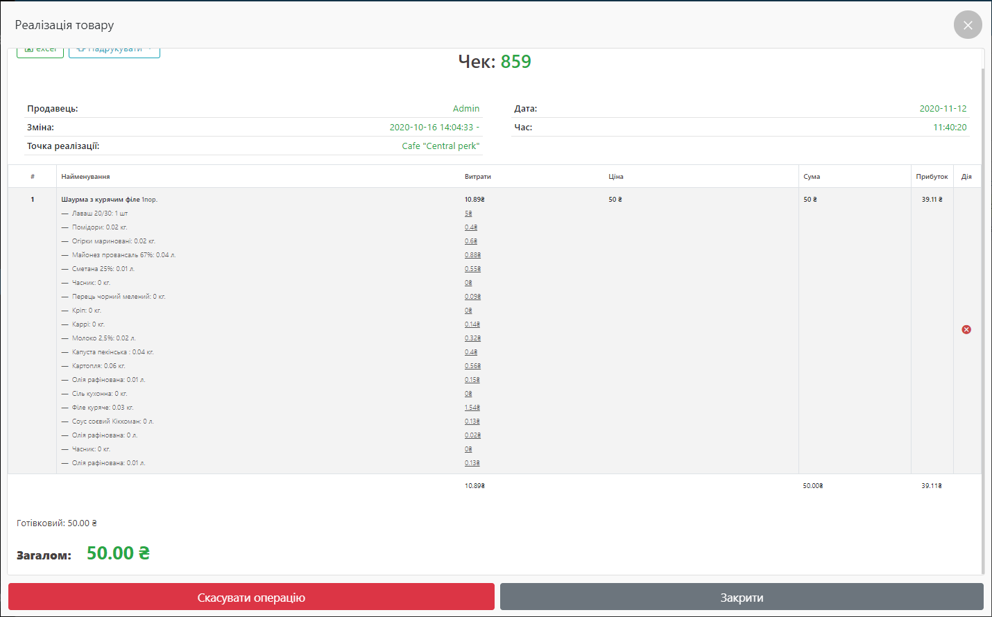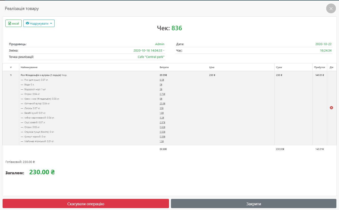 - Обираємо чек і можемо продивитись необхідну на інформацію по даній продажі.