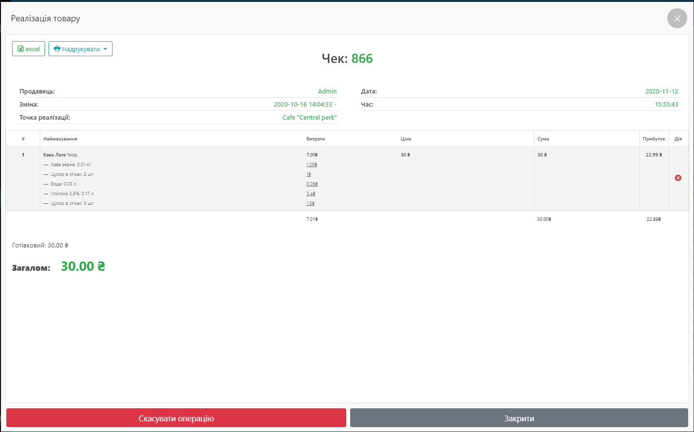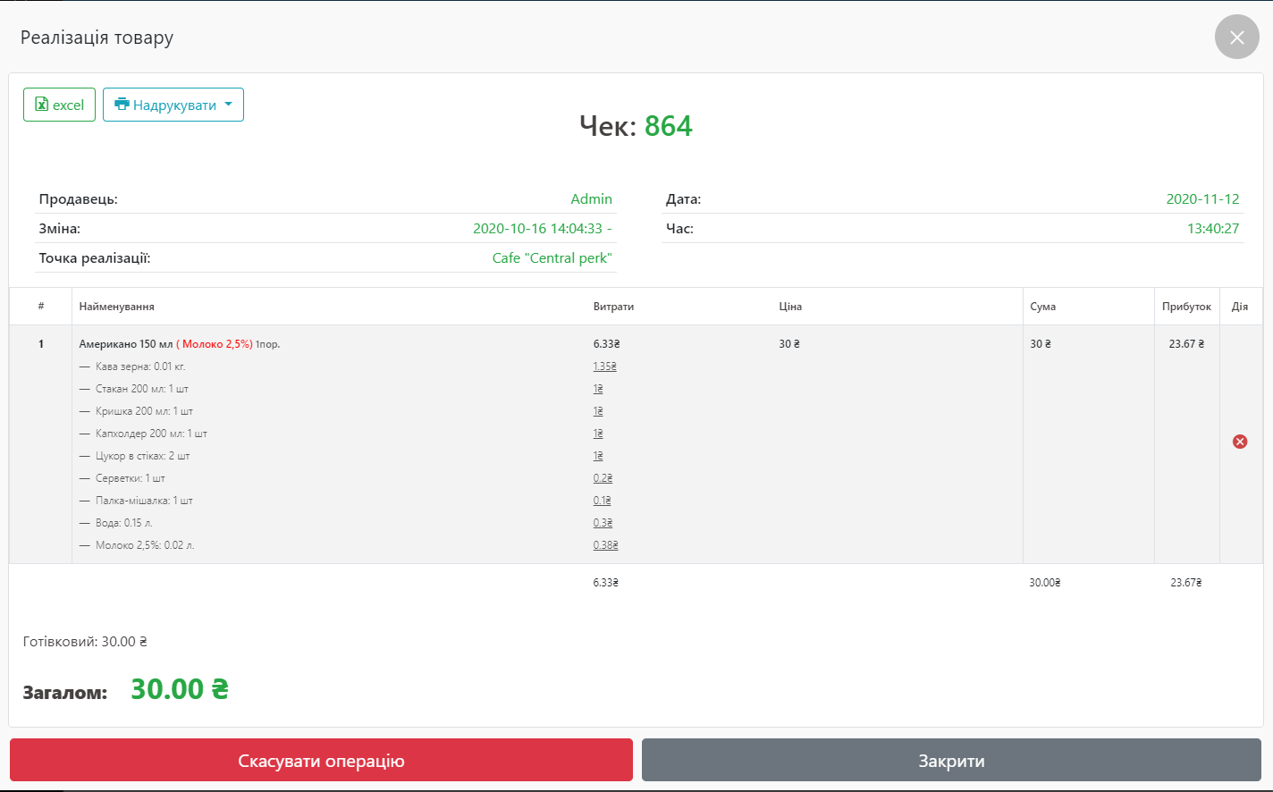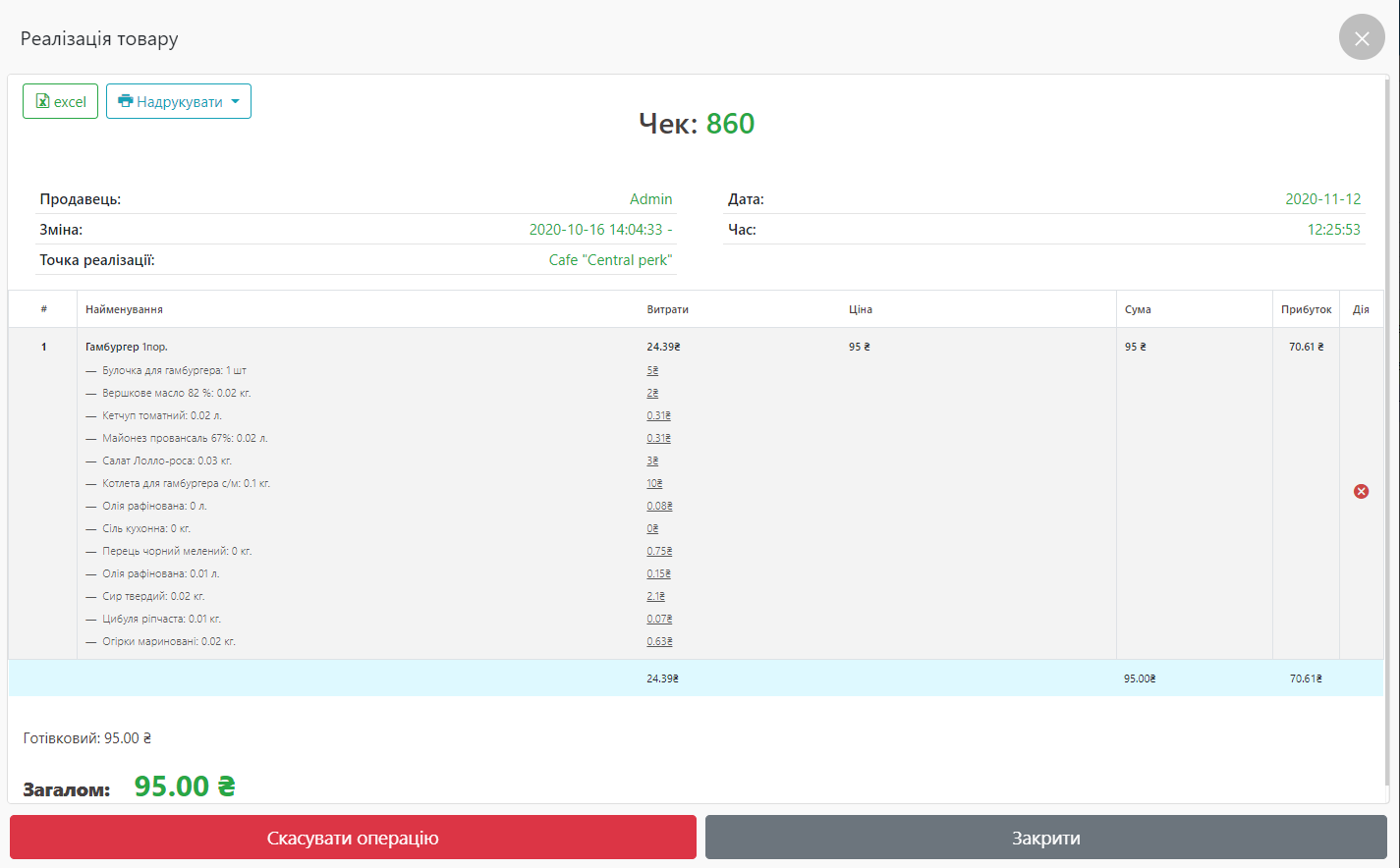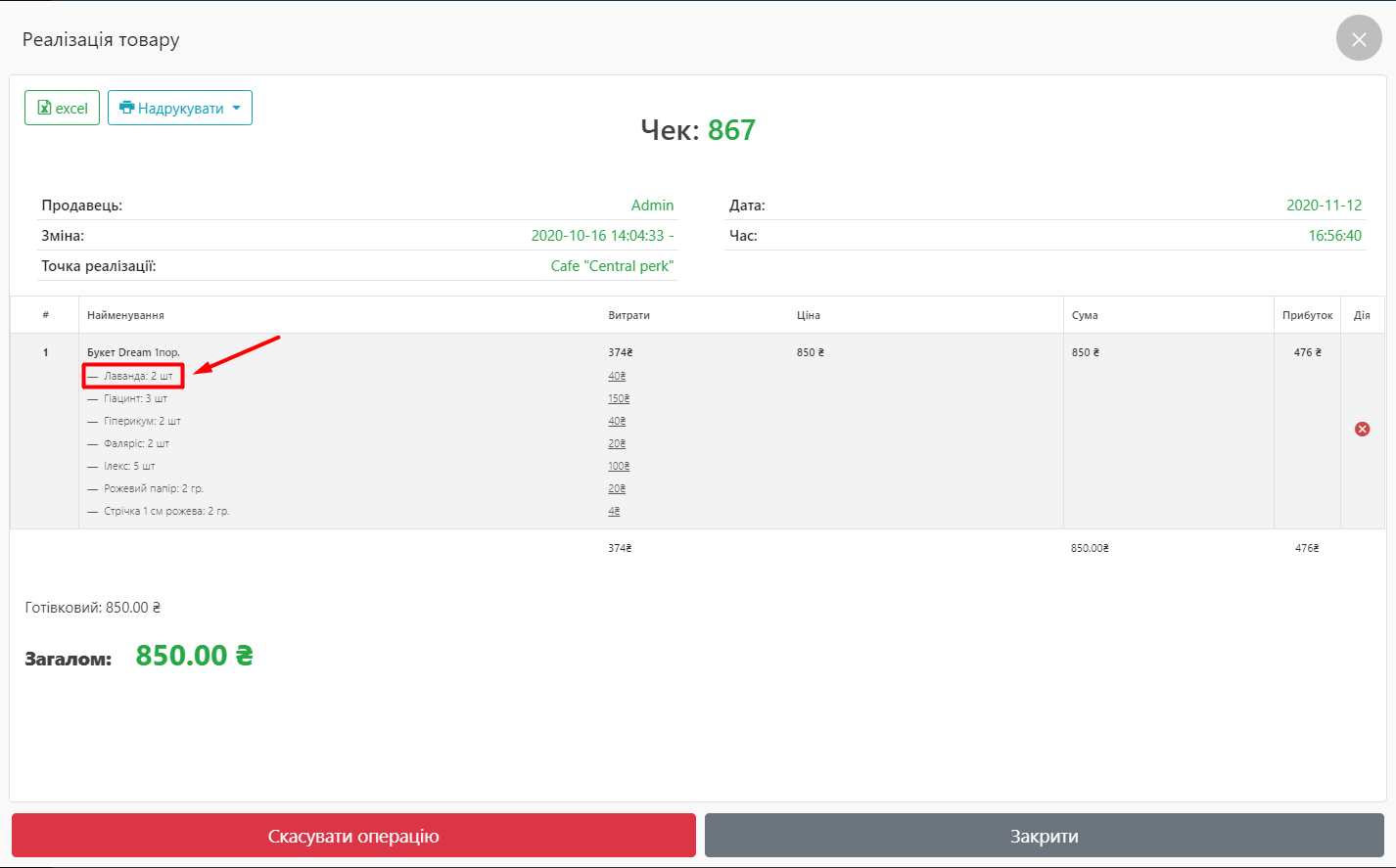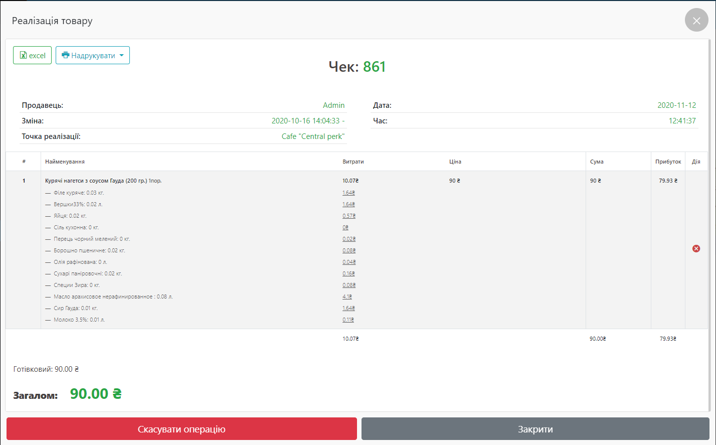 - Обираємо чек і можемо продивитись необхідну на інформацію по даній продажі.