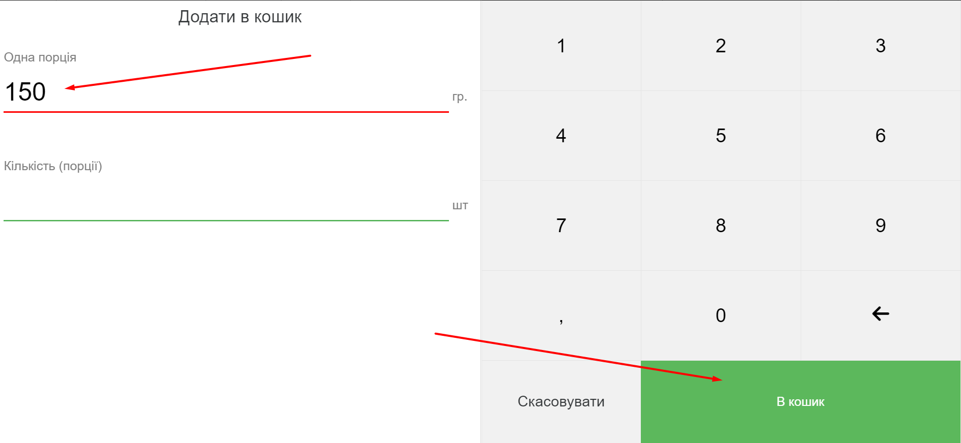 - Вказуємо кількість (наприклад 150 гр), і натискаємо В корзину