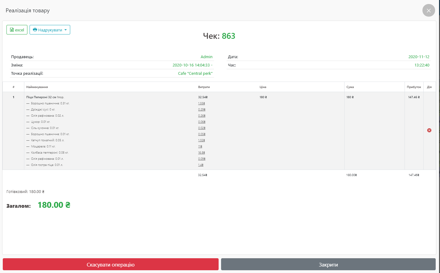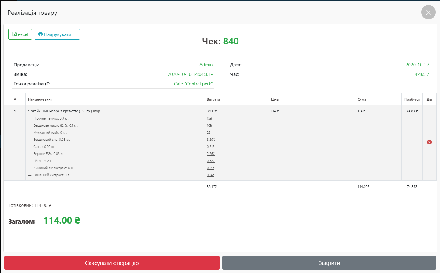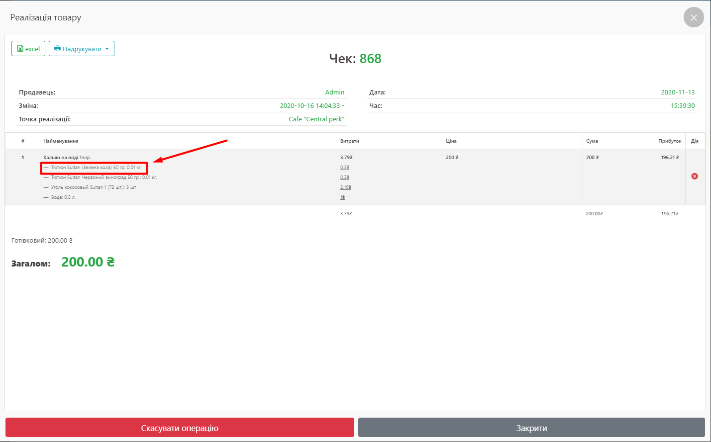 - Обираємо потрібний нам чек і можемо продивитись необхідну інформацію по даній продажі.