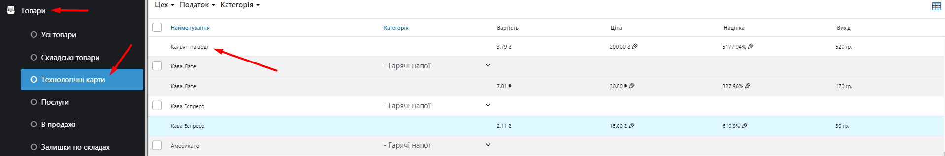 - Відкрийте вкладку Товари → Технологічні карти в адмін-панелі.