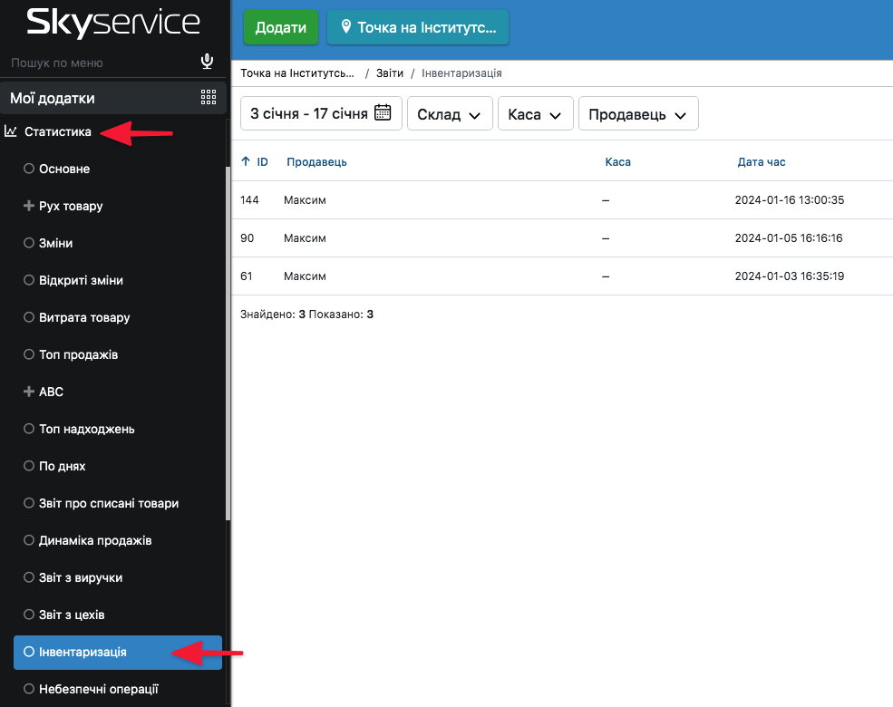 - В Панелі адміністрування перейдіть в розділ Статистика → Інвентаризація