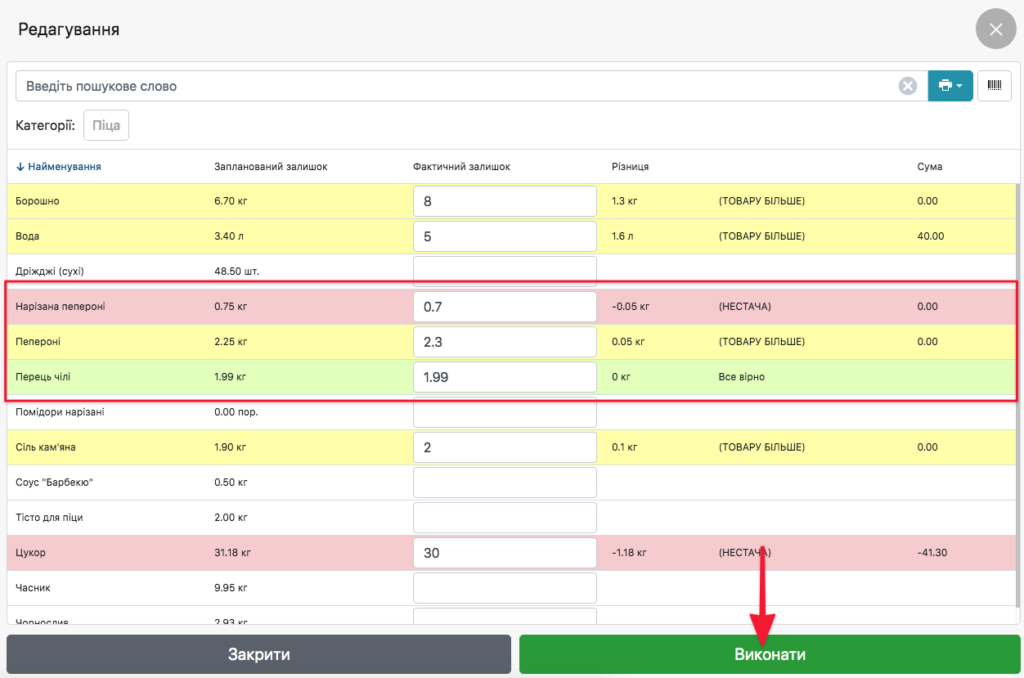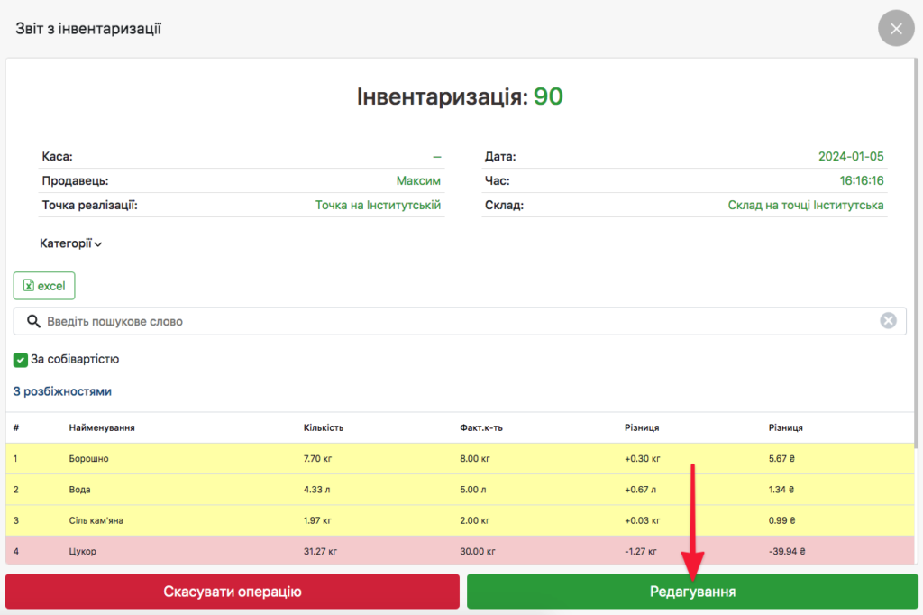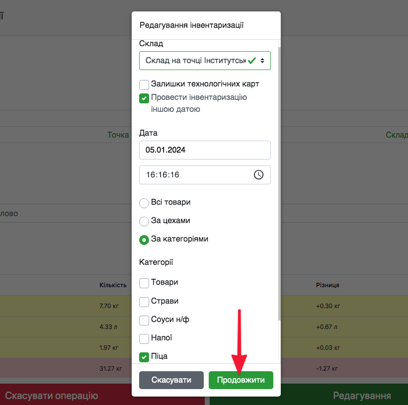 - Змініть початкові умови Інвентаризації, якщо необхідно