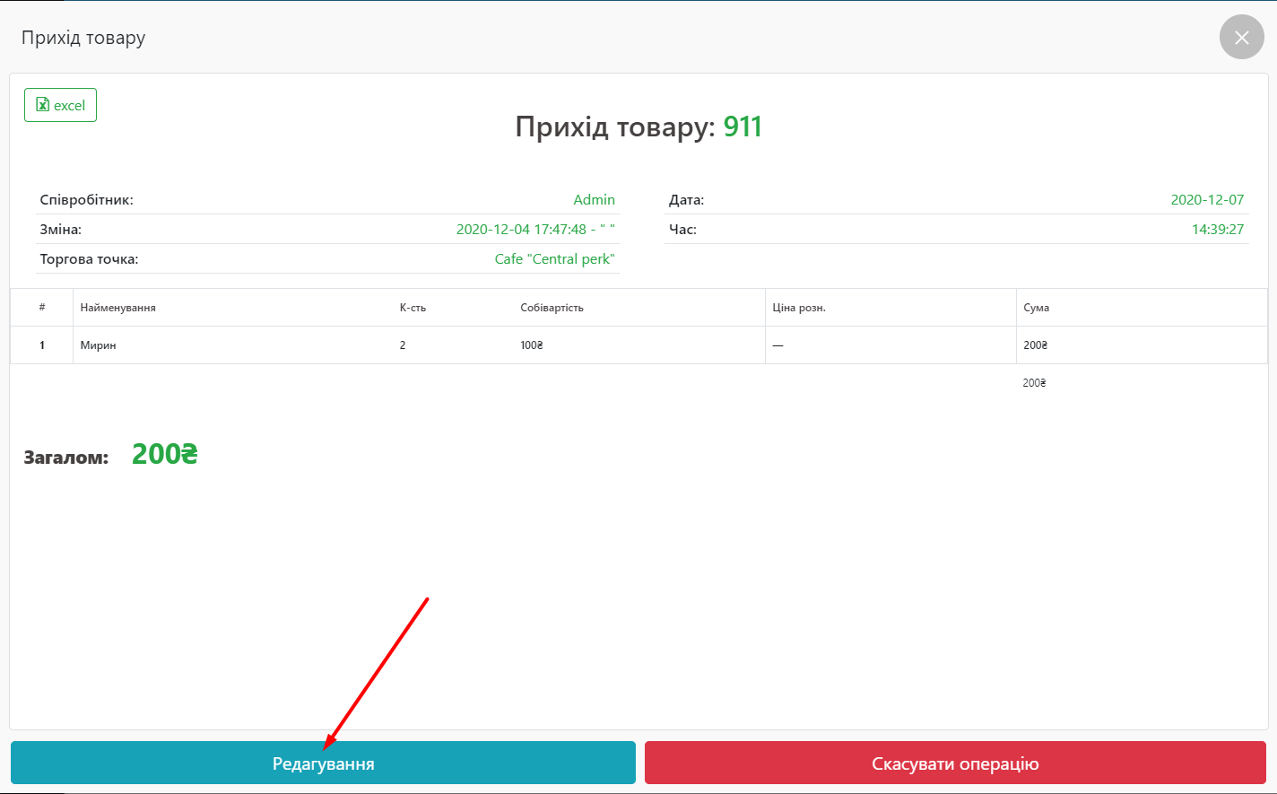 👉 Редагування документа Надходження товару буде обмежено у випадку, якщо було виконане Повернення товару постачальнику по даному документу.