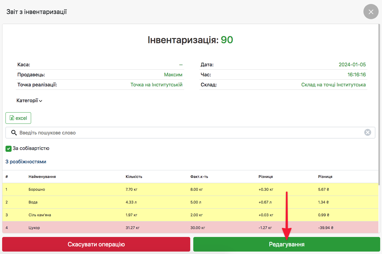 - Змініть початкові умови Інвентаризації, якщо необхідно