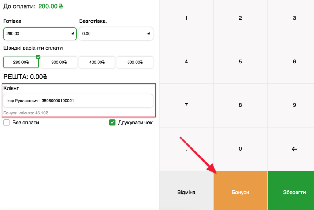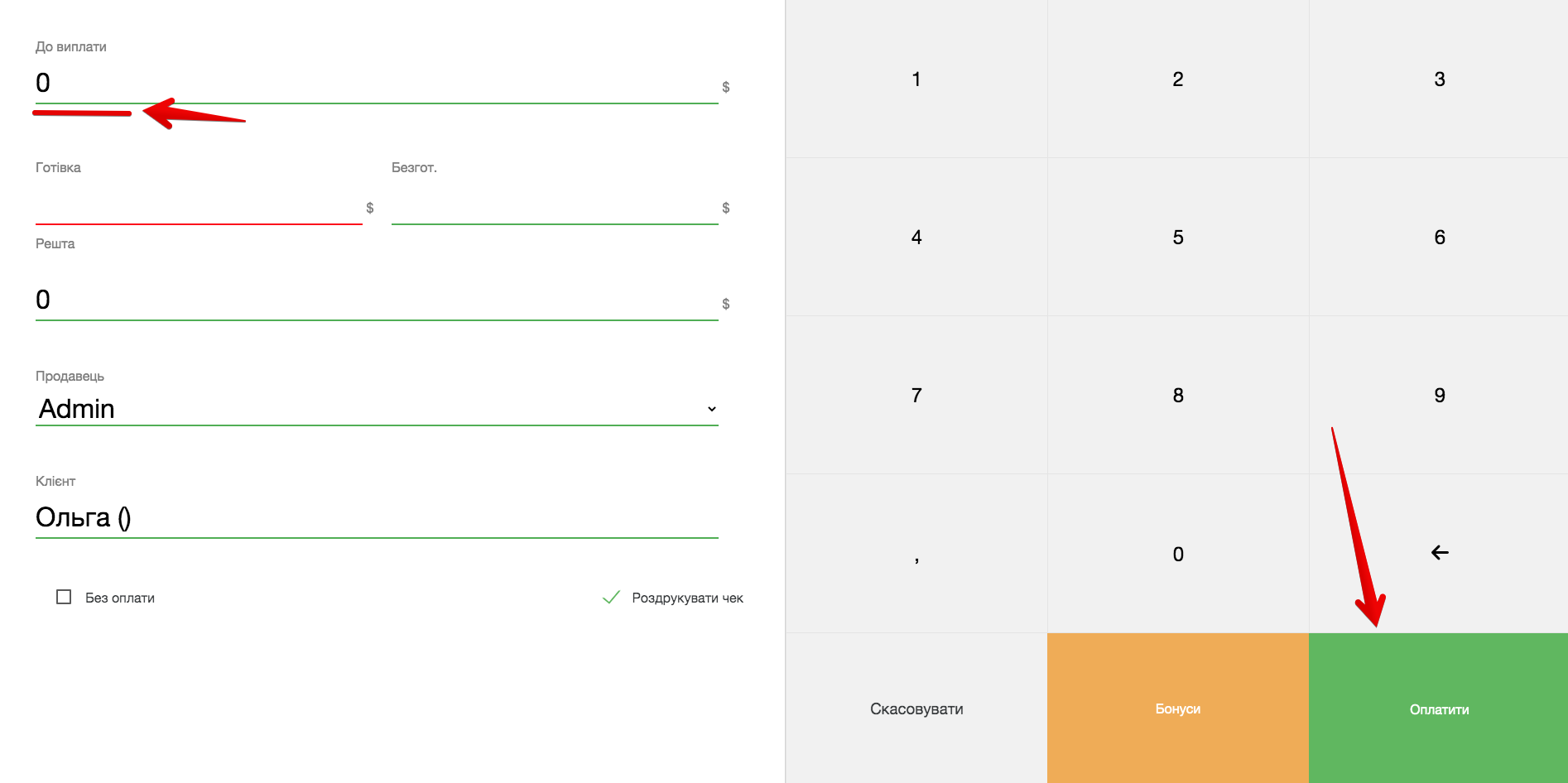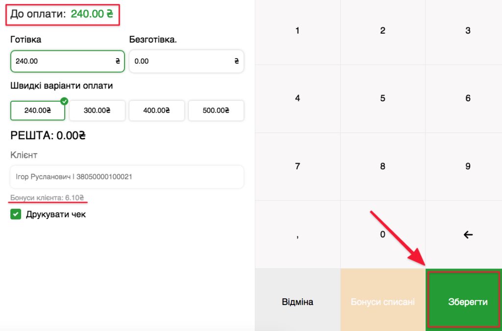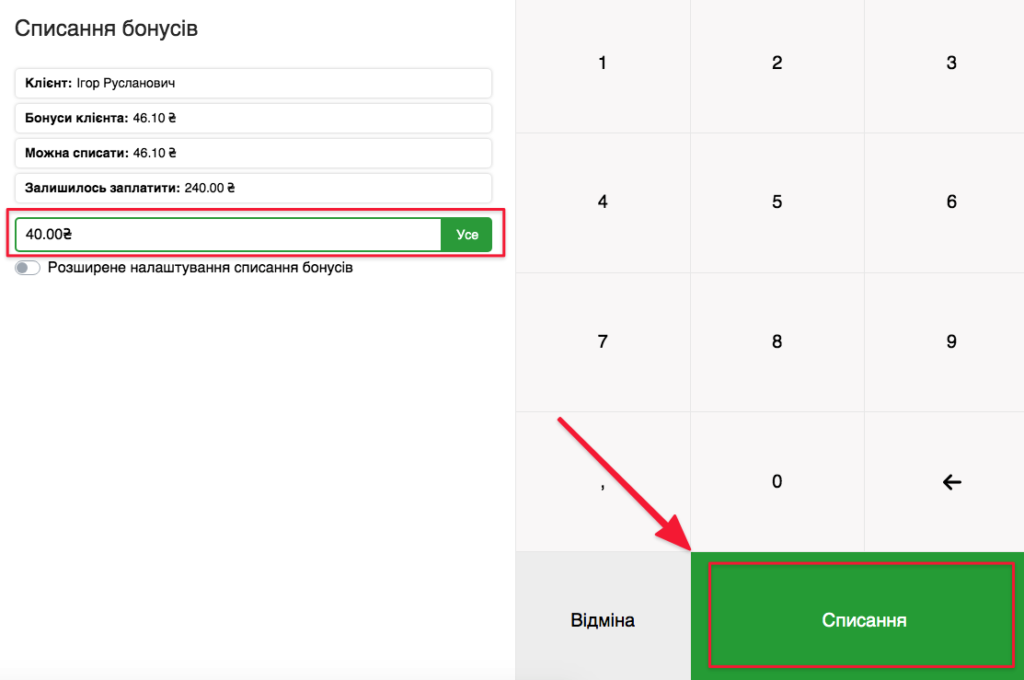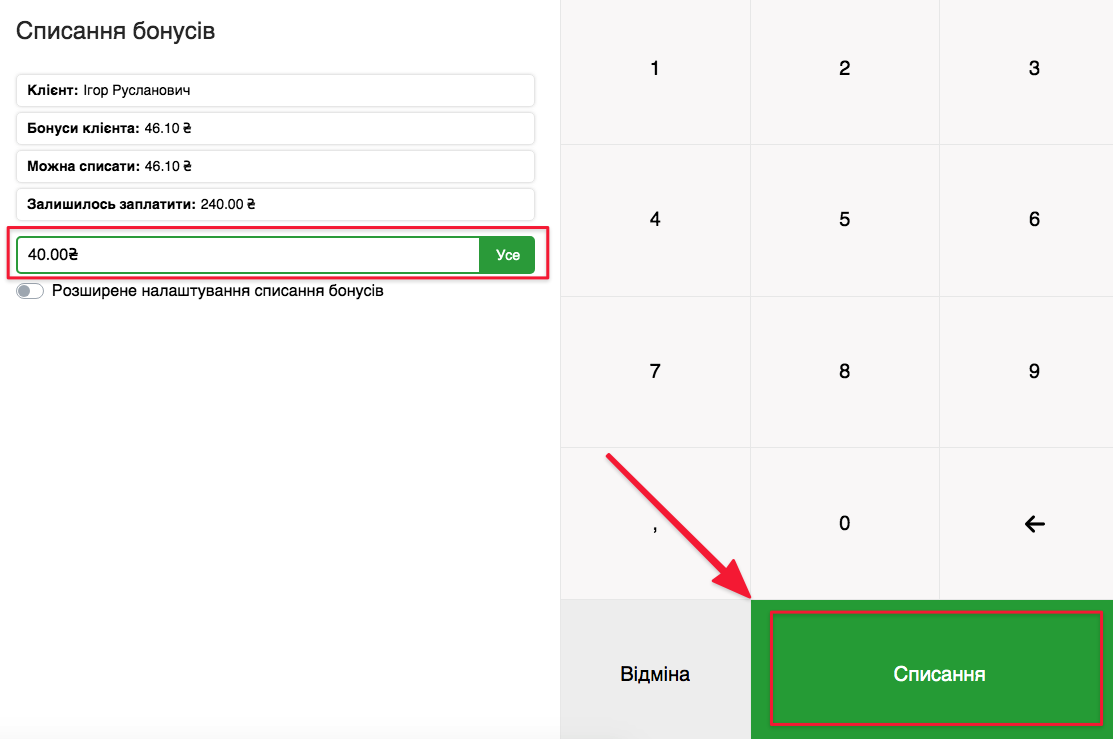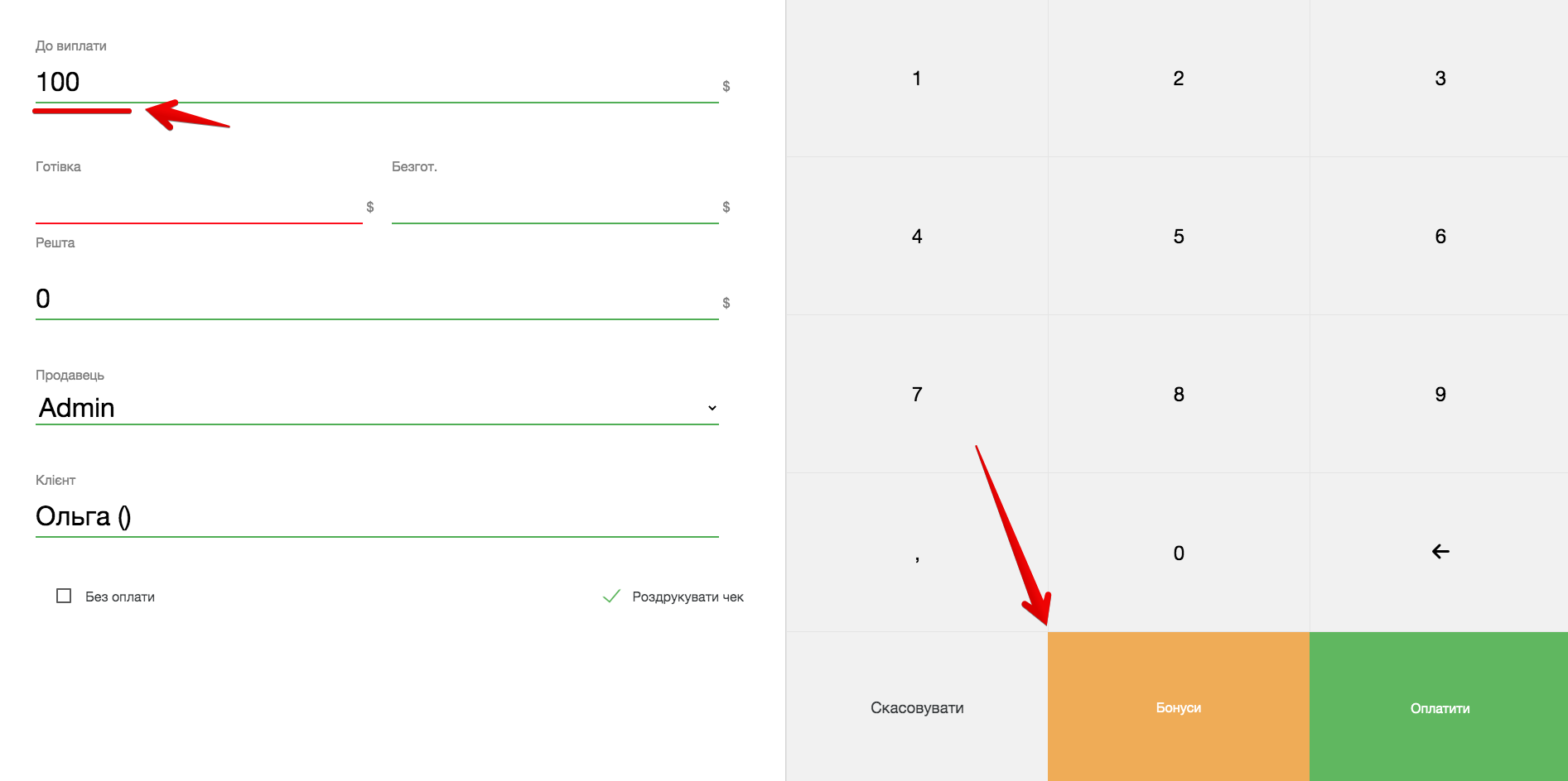 - Після цього сума до оплати зміниться (бонуси клієнта будуть списані)