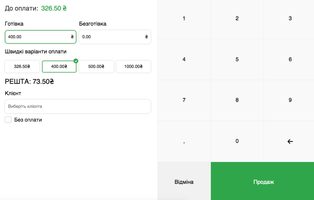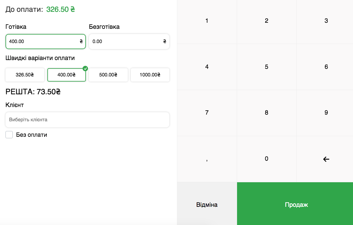 - Після цього, перевірте коректність суми до оплати та натискайте Продаж