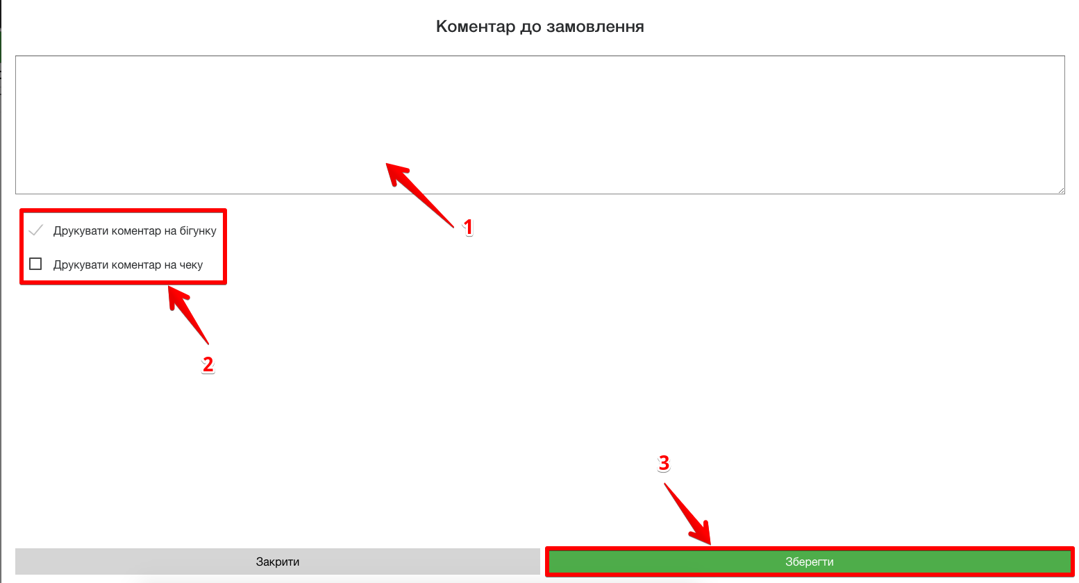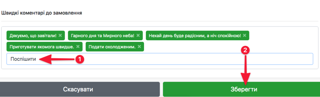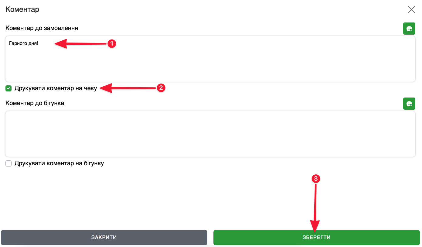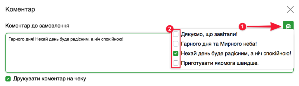 ☝️ Ви також можете використовувати Швидкі коментарі до замовлення (їх можна обирати як до чеку, так і до бігунка):