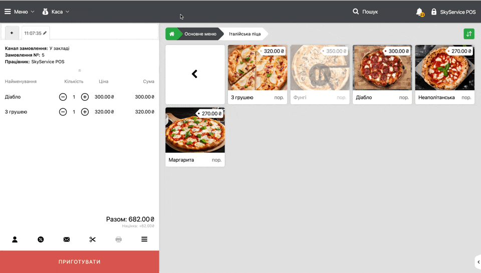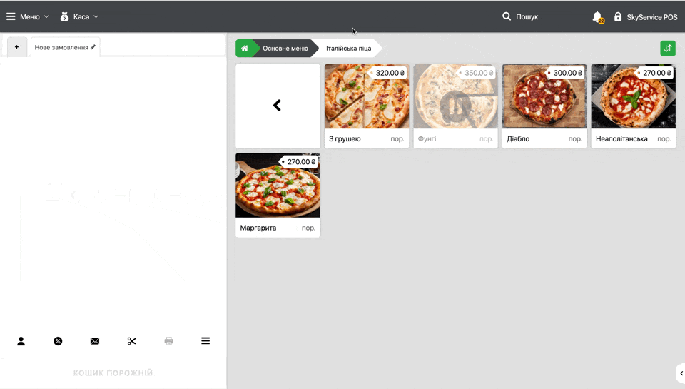 - У Касі створіть замовлення, вибравши потрібні товари.