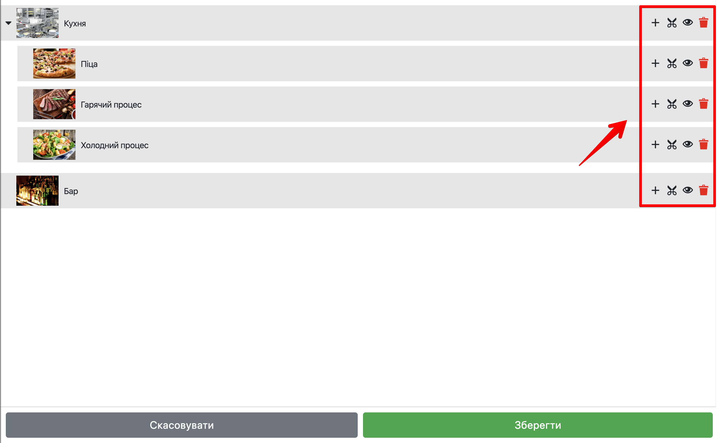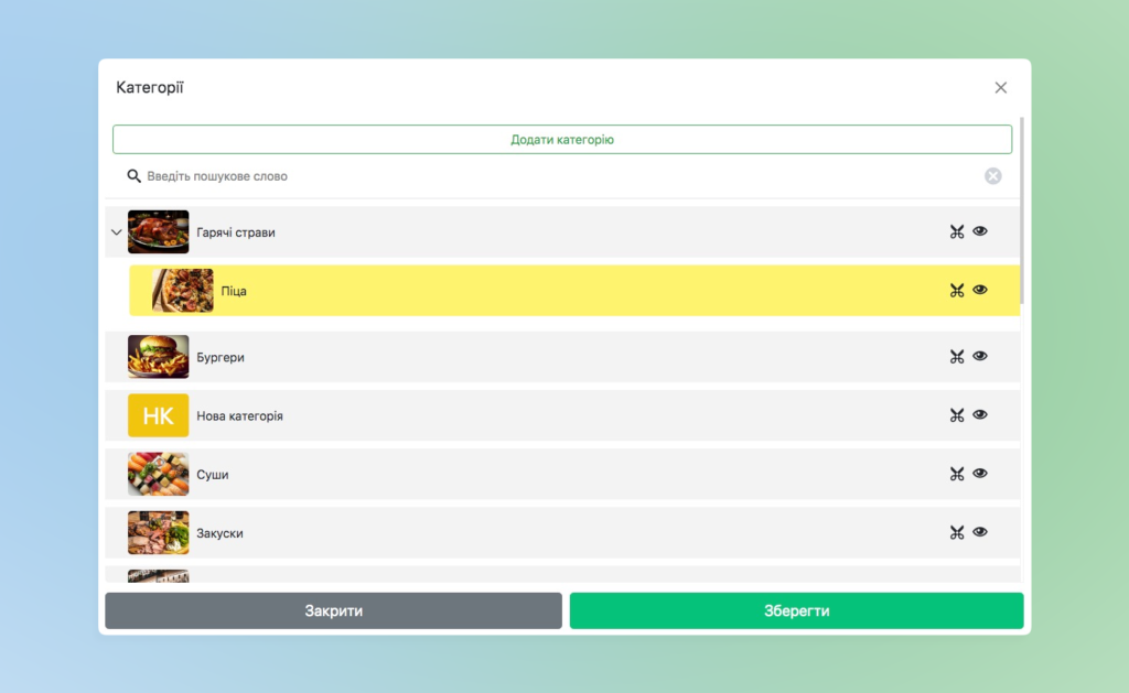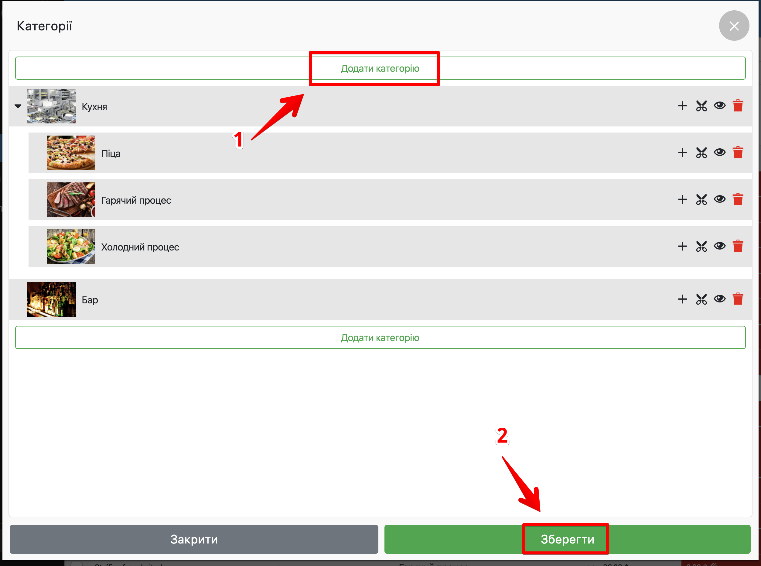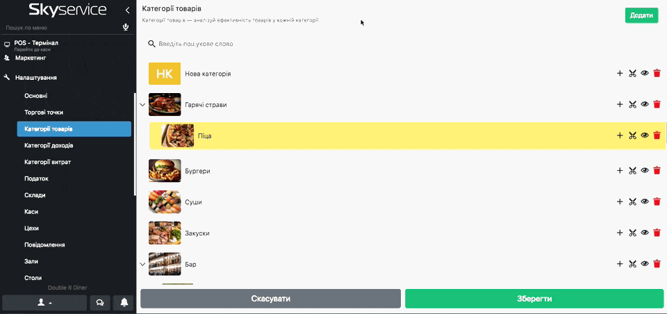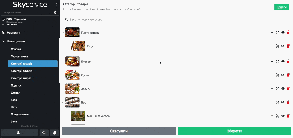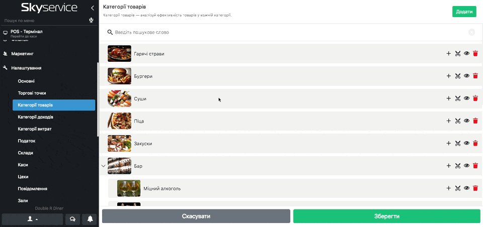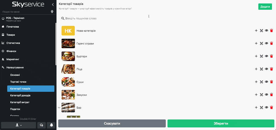 - Кнопка «Око» – приховує відображення категорії в пос-терміналі