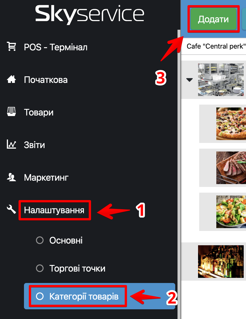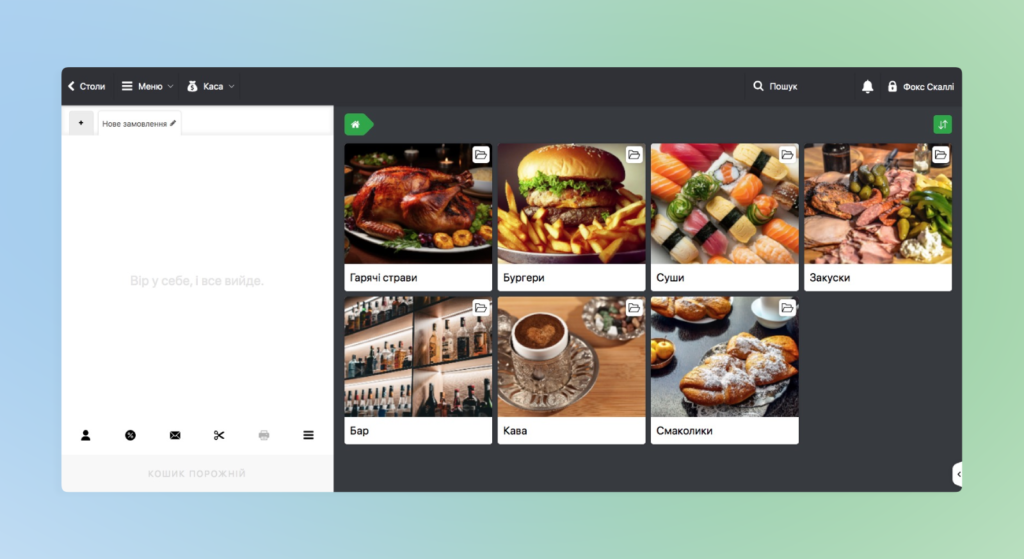 - У POS-терміналі праворуч будуть відображені категорії, які ви створили у пункті 1 або 2