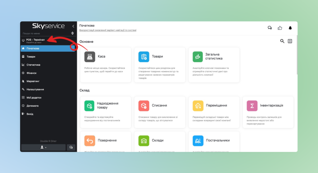 - Перейдіть до каси, для цього натисніть POS-термінал