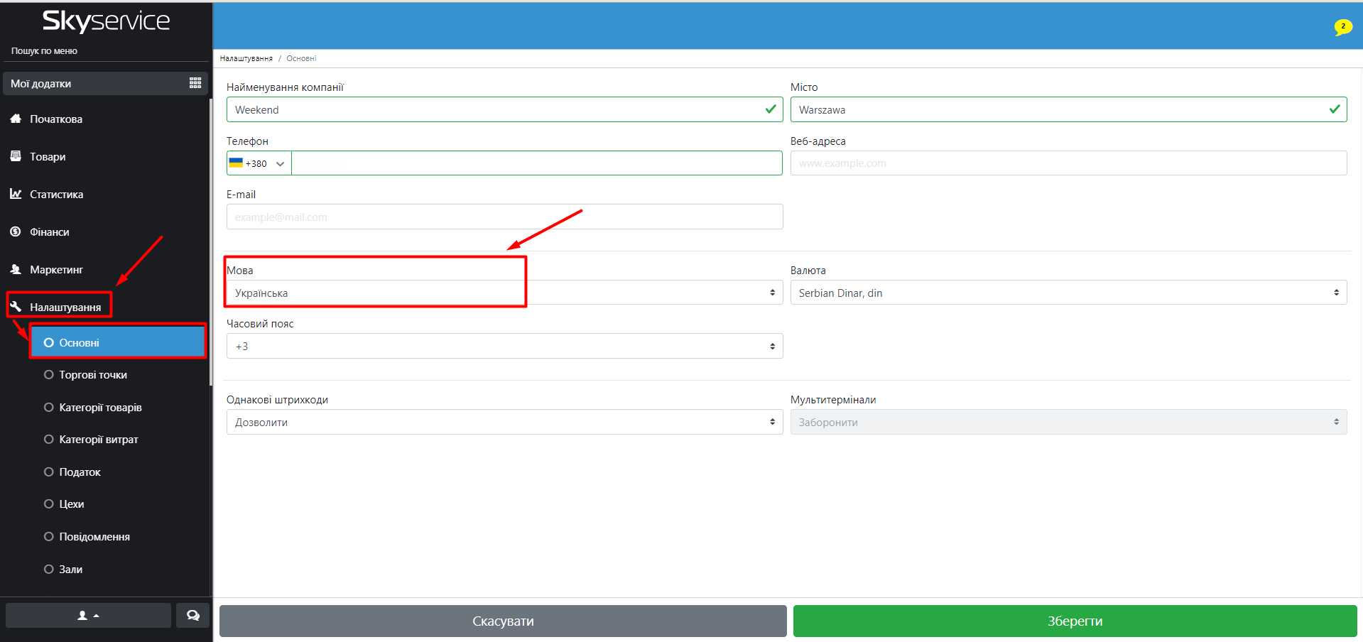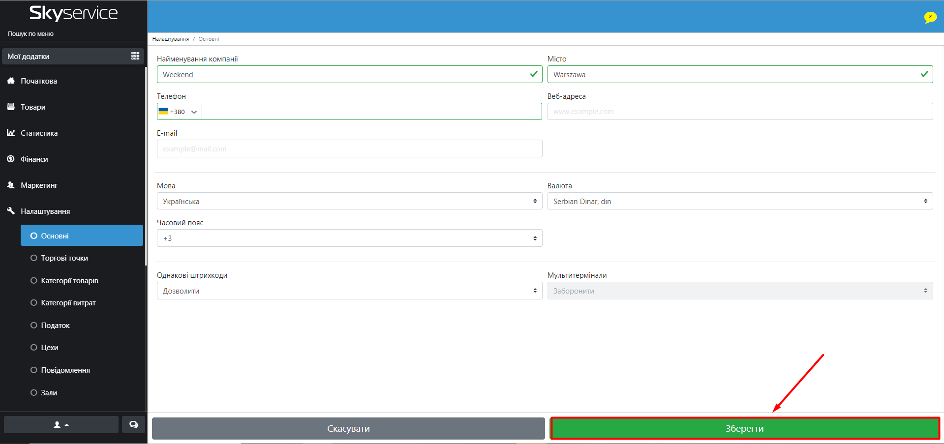 - Для того, щоб зміни відобразилися в програмі, натисніть “Зберегти”.