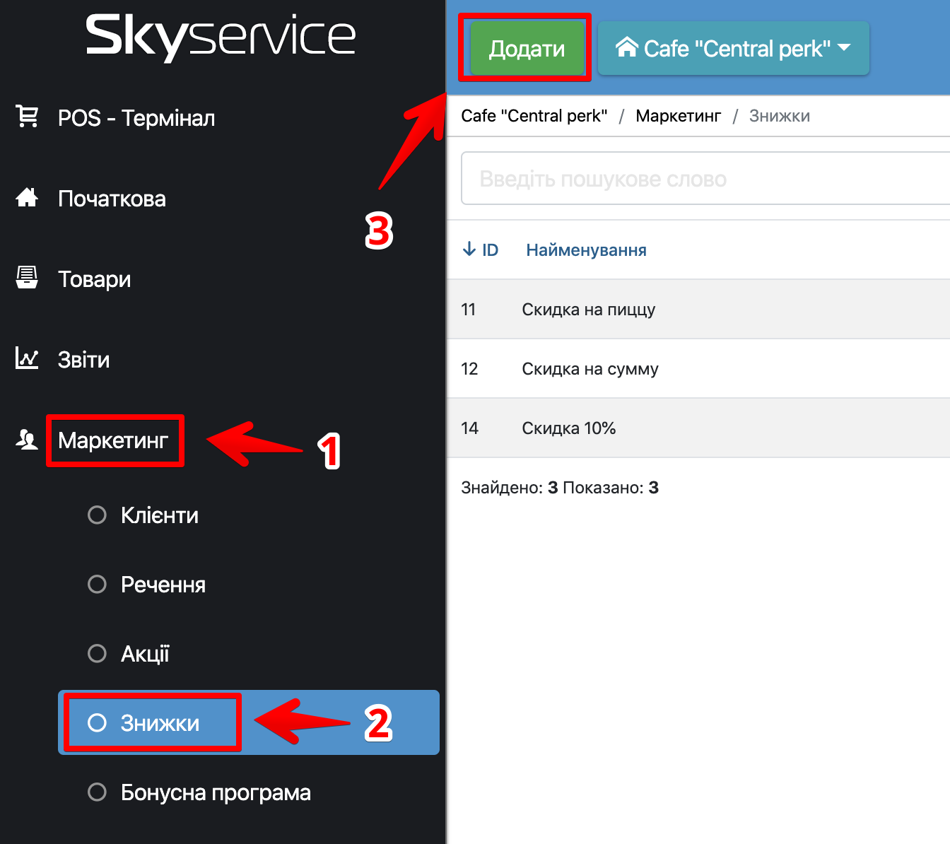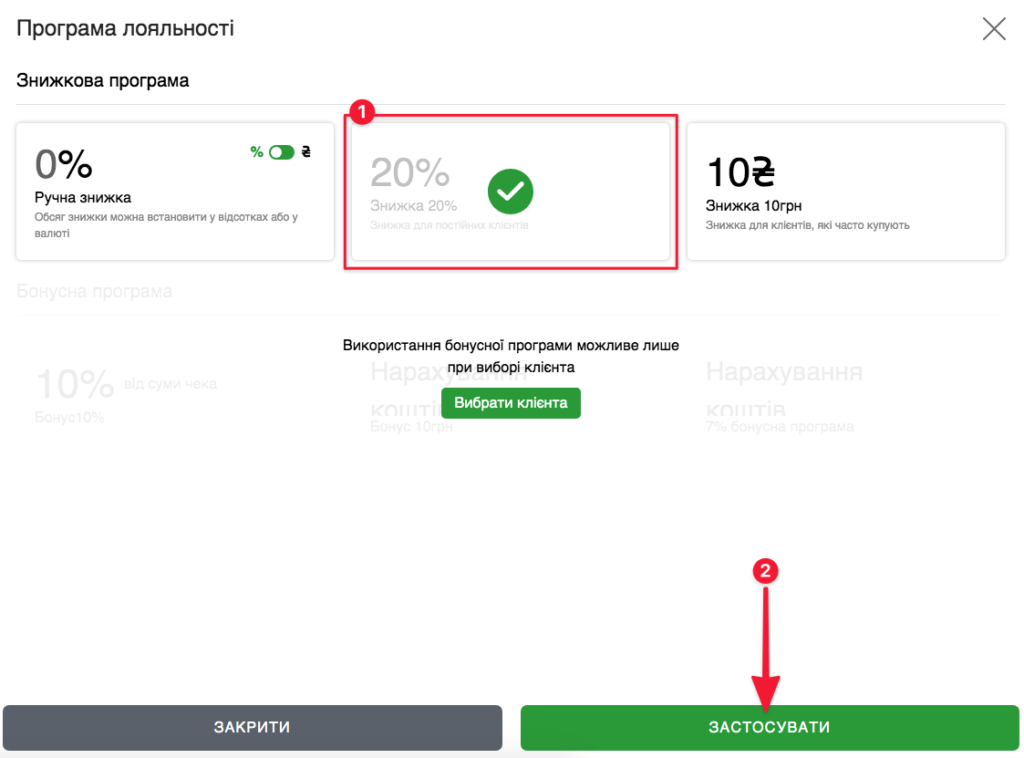Застосування знижки в POS Терміналі