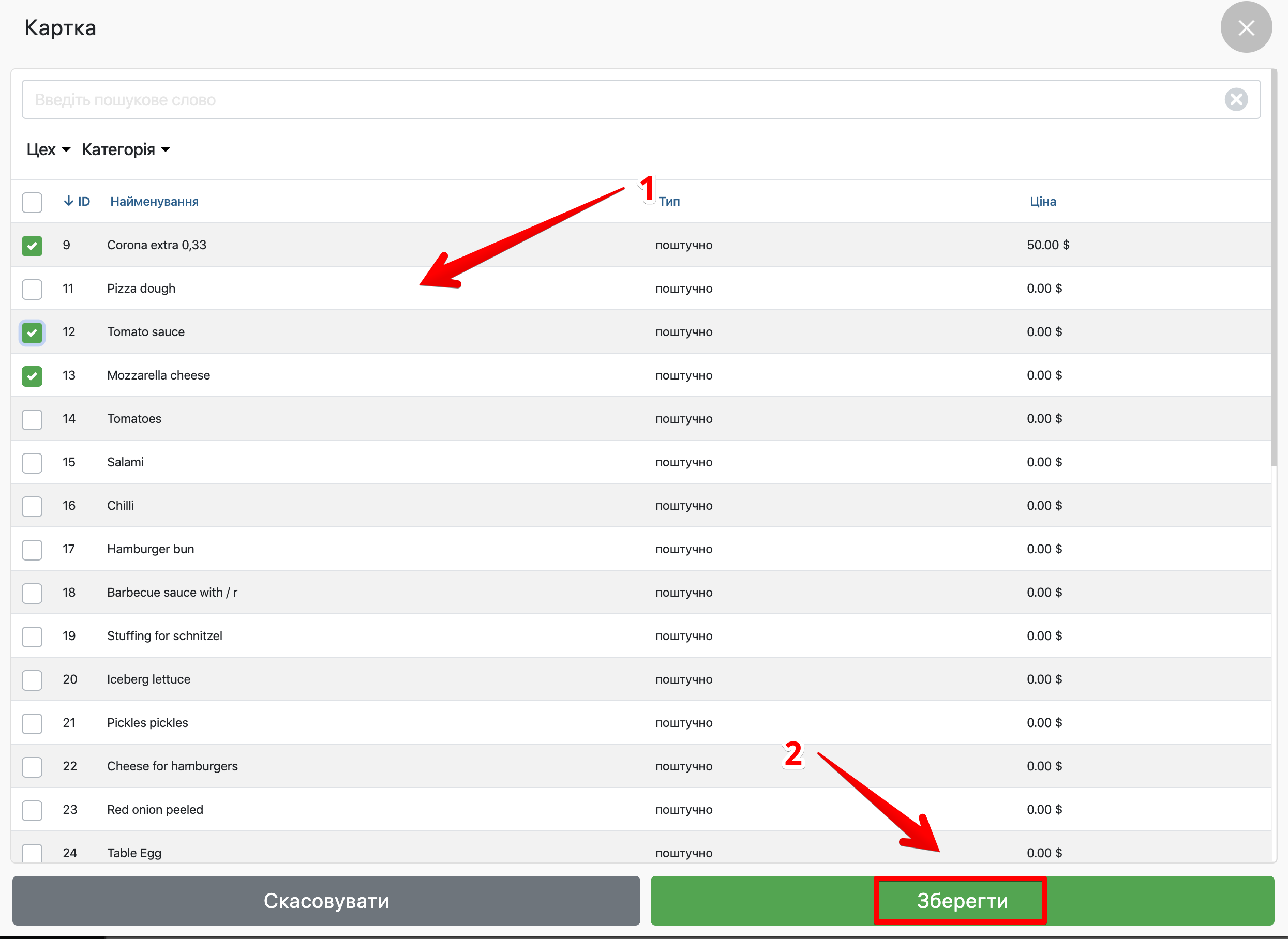 - Виберіть необхідні Товари і додайте їх у Замовлення