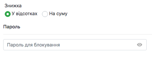 - При необхідності, введіть пароль ➔ його введення буде необхідним для застосування даної знижки у POS-терміналі