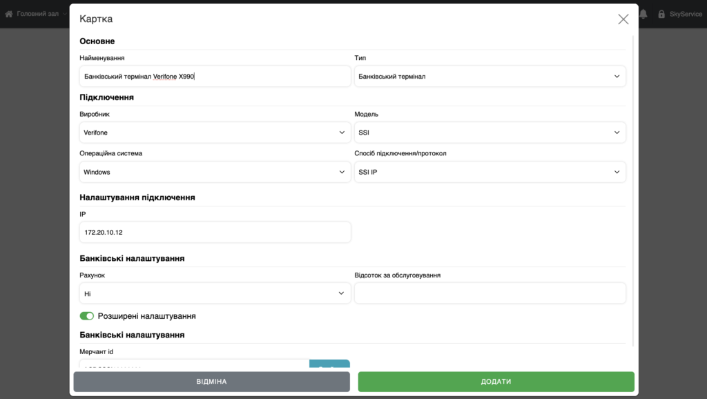 Підключення терміналу в SkyService
