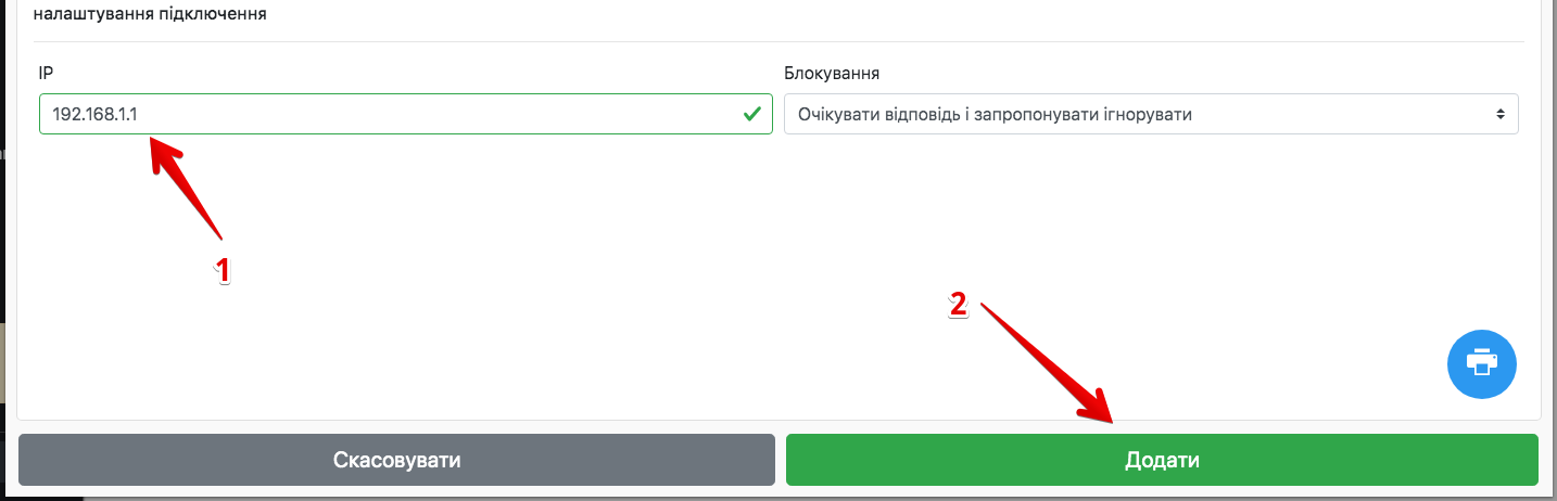 - У полі IP вкажіть IP-адресу вашого фіскального реєстратора