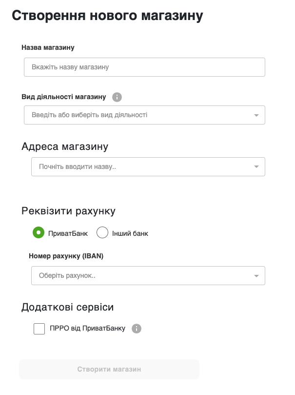 - Адресу магазину – вкажіть адресу місцерозташування вашого магазину/закладу, потрібно вказати область, місто, вулиця, будинок.