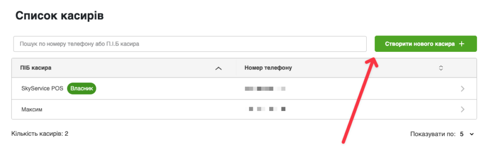 - Натисніть “Створити нового касира“