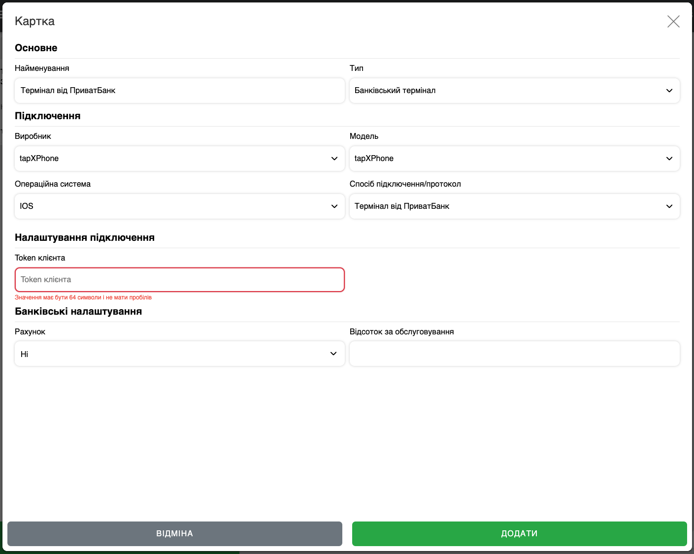 - Тип – Банківський термінал;