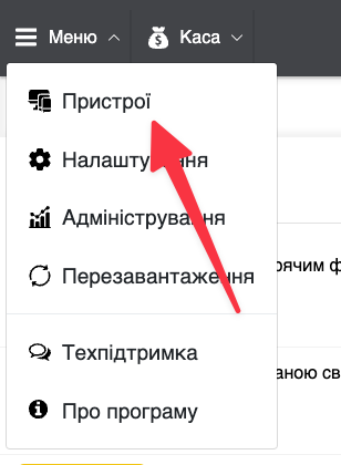- Натисніть “Меню – Пристрої“