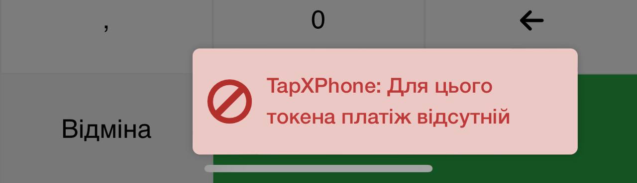 ☝🏻 Якщо транзакцію скасували в додатку “Термінал”, то з’явиться таке попередження: