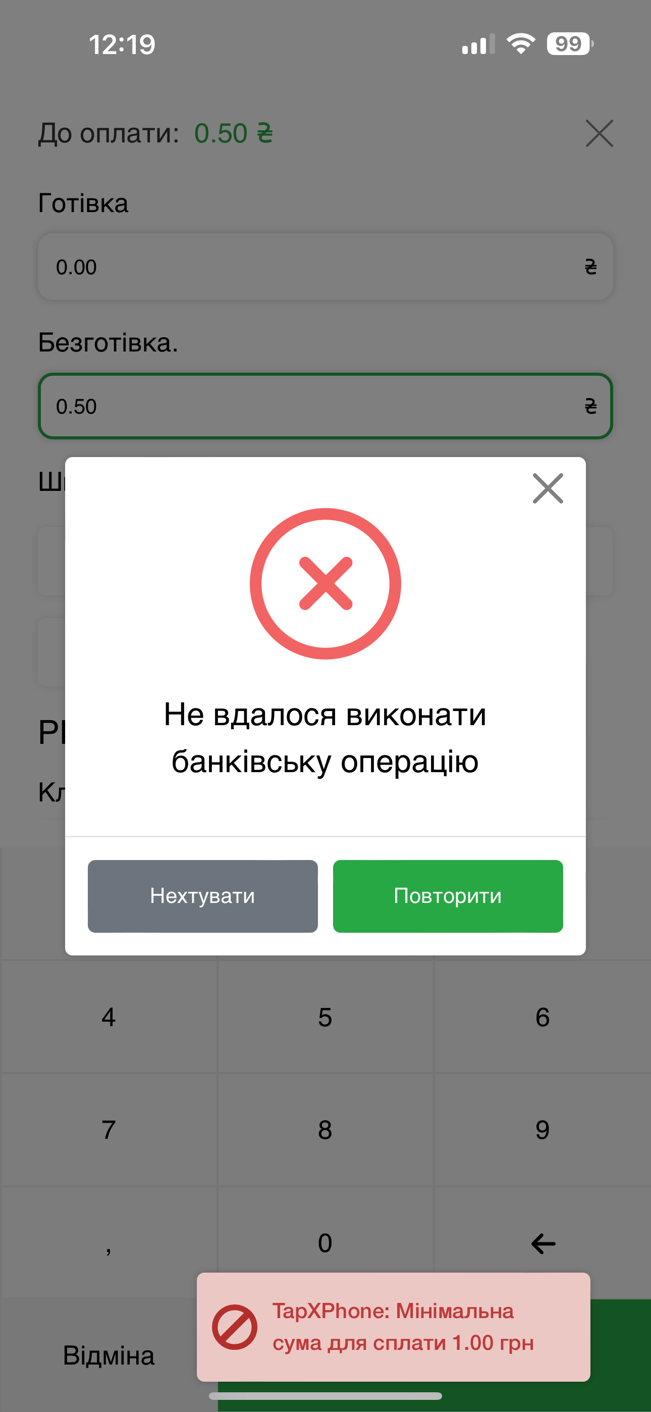 ☝🏻 Якщо сума транзакція/продажу менше 1.00 грн., то з’явиться таке попередження: