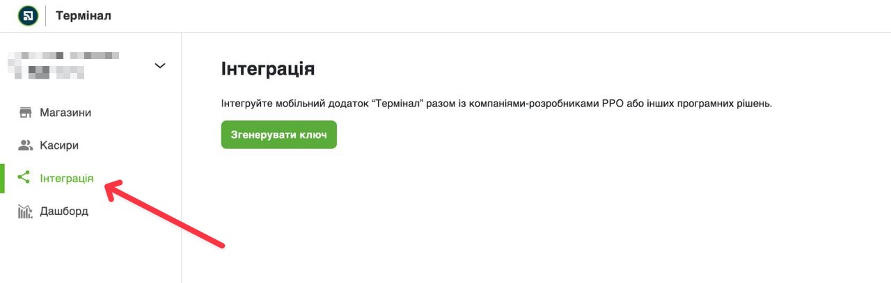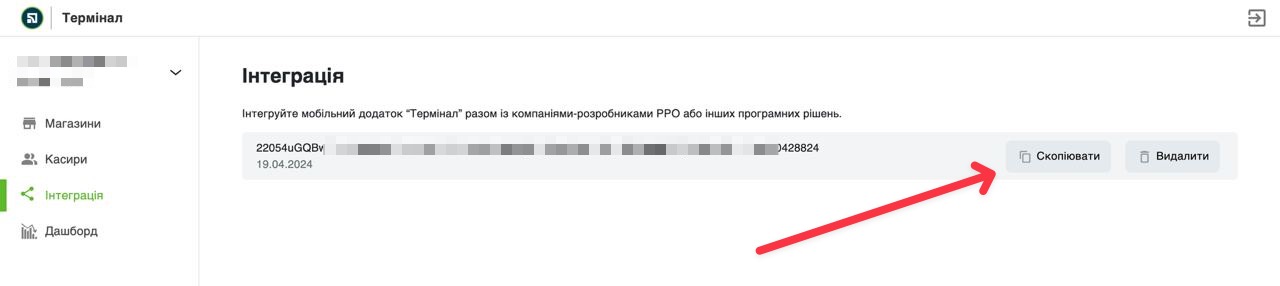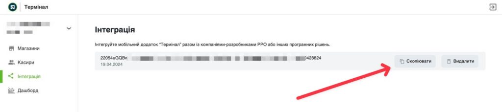 - На сторінці з’явиться “токен” для інтеграція терміналу з SkyService POS