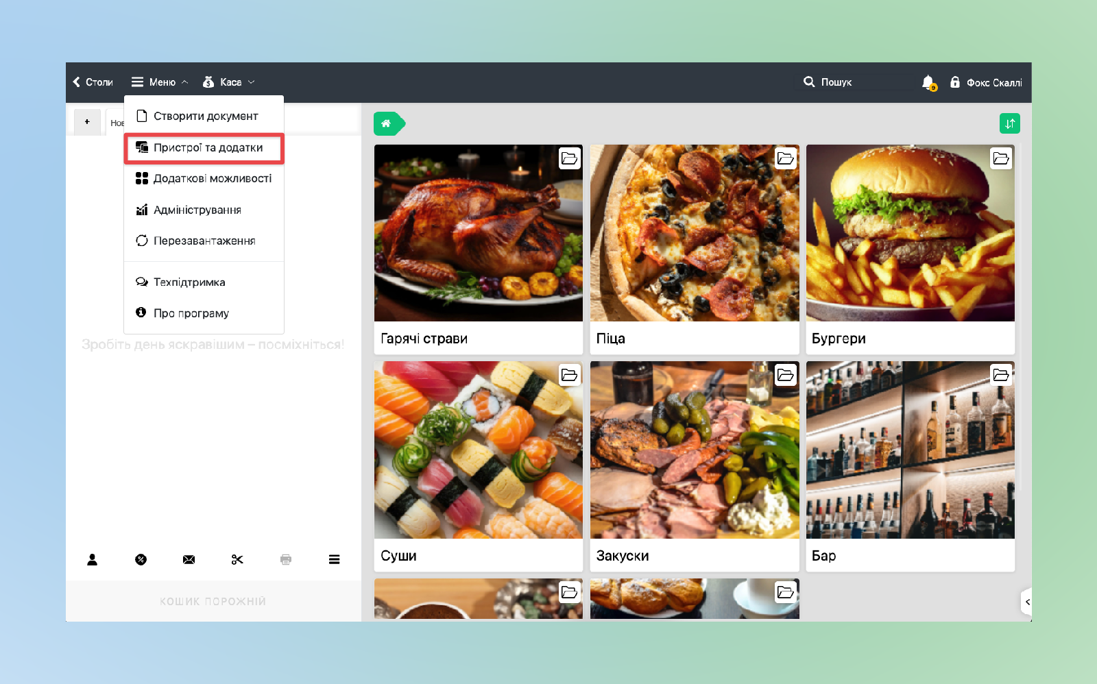 • В POS-терміналі тисніть зверху Меню ➜ далі Пристрої та додатки ➜ натисніть Додати пристрій