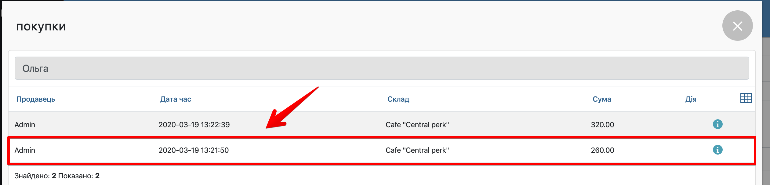 ☝️ Щоб не відкривати документ продажу, можете натиснути на іконку “і” в колонці Дія.