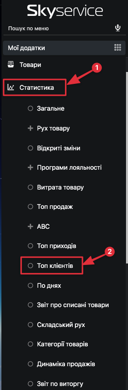 - У Адмін-панелі перейдіть в розділ Статистика – Топ клієнтів