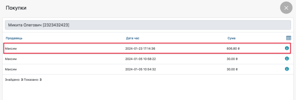 - Натиснувши на покупку клієнта