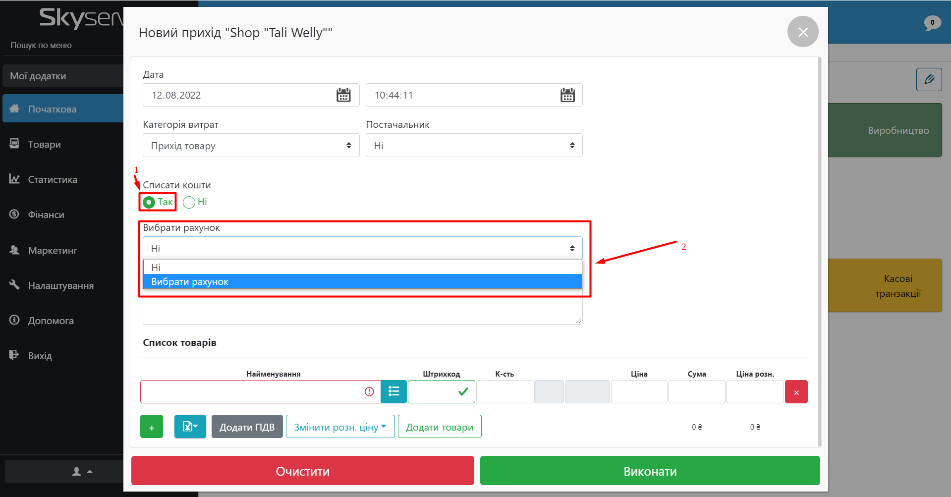 - У відкритому вікні оберіть “Так” в пункті “Списати кошти”