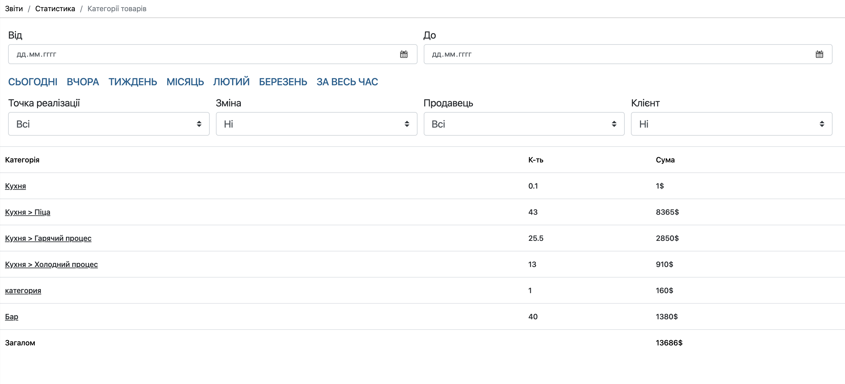 - У Панелі адміністрування перейдіть в розділ Статистика ➜ Категорії товарів