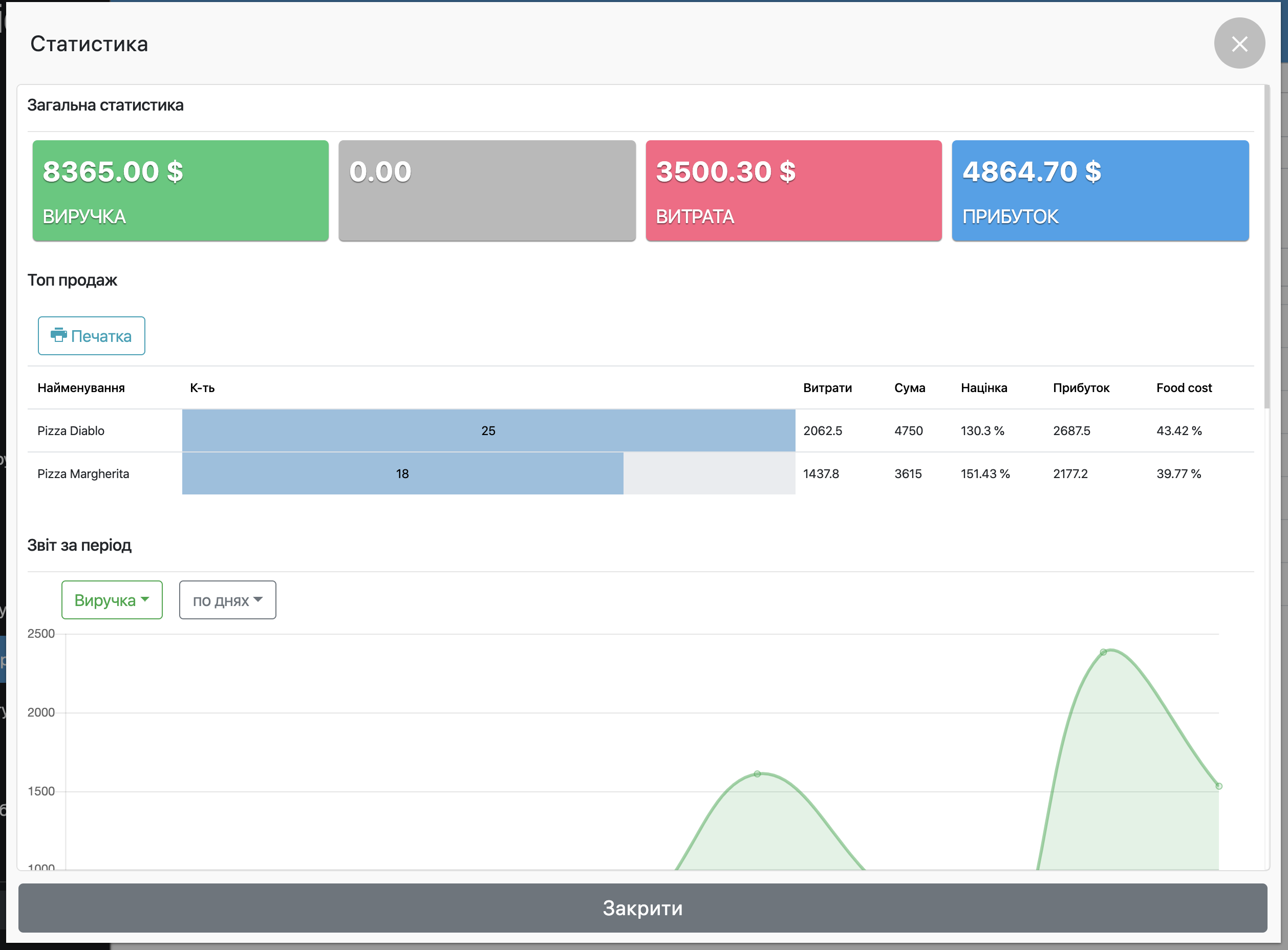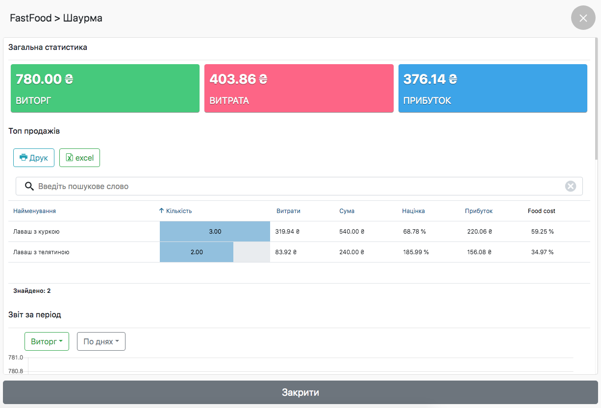 - Натиснувши на позицію в топ-продажах ви побачите список чеків з проданим товаром за обраний раніше період
