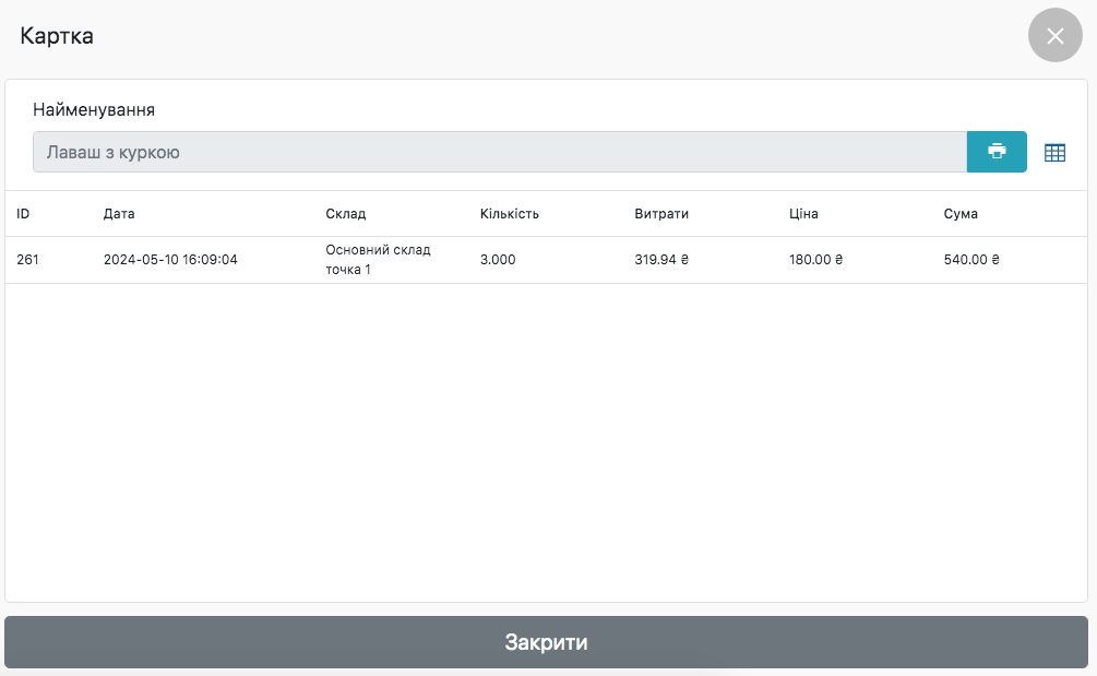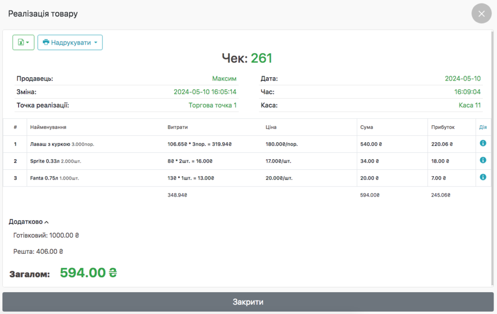 - Натисніть на конкретний чек, щоб переглянути детальну інформацію по продажу