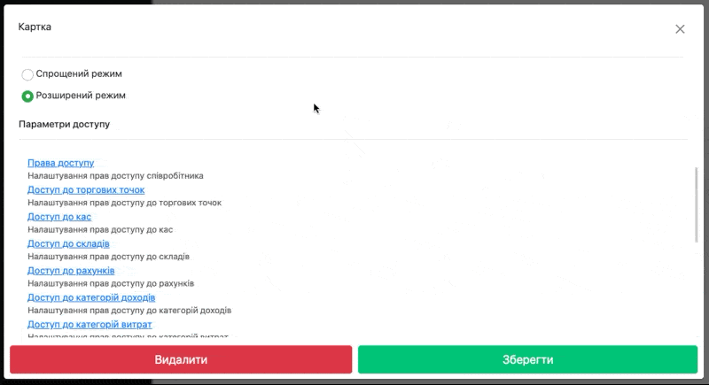 ☝🏻Дані Права доступу можливо налаштувати також в Посаді працівника: