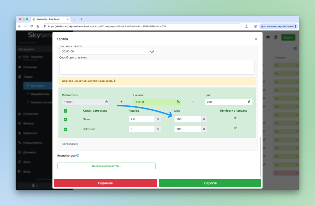 Як змінити ціни до створених каналів замовлення