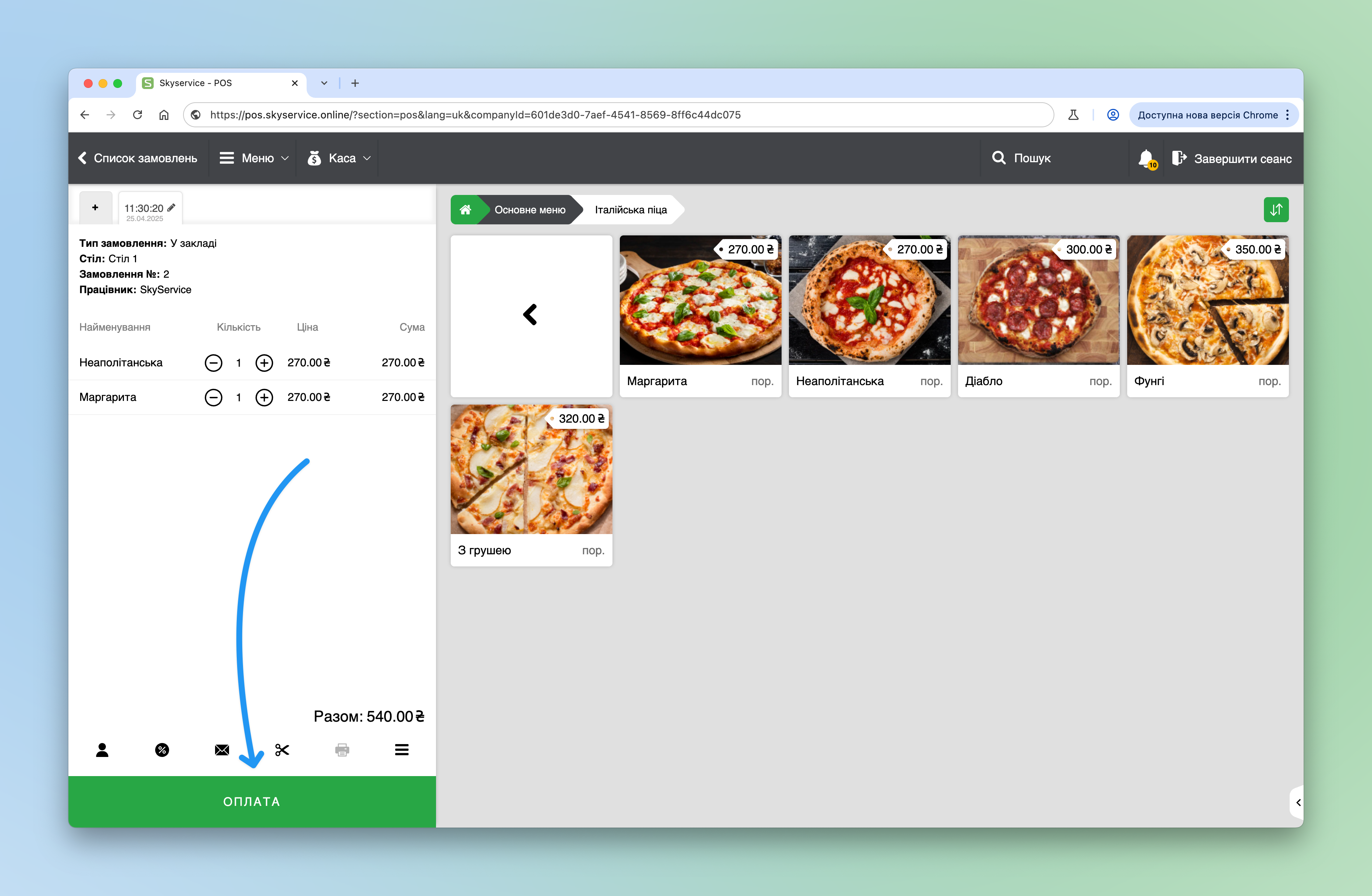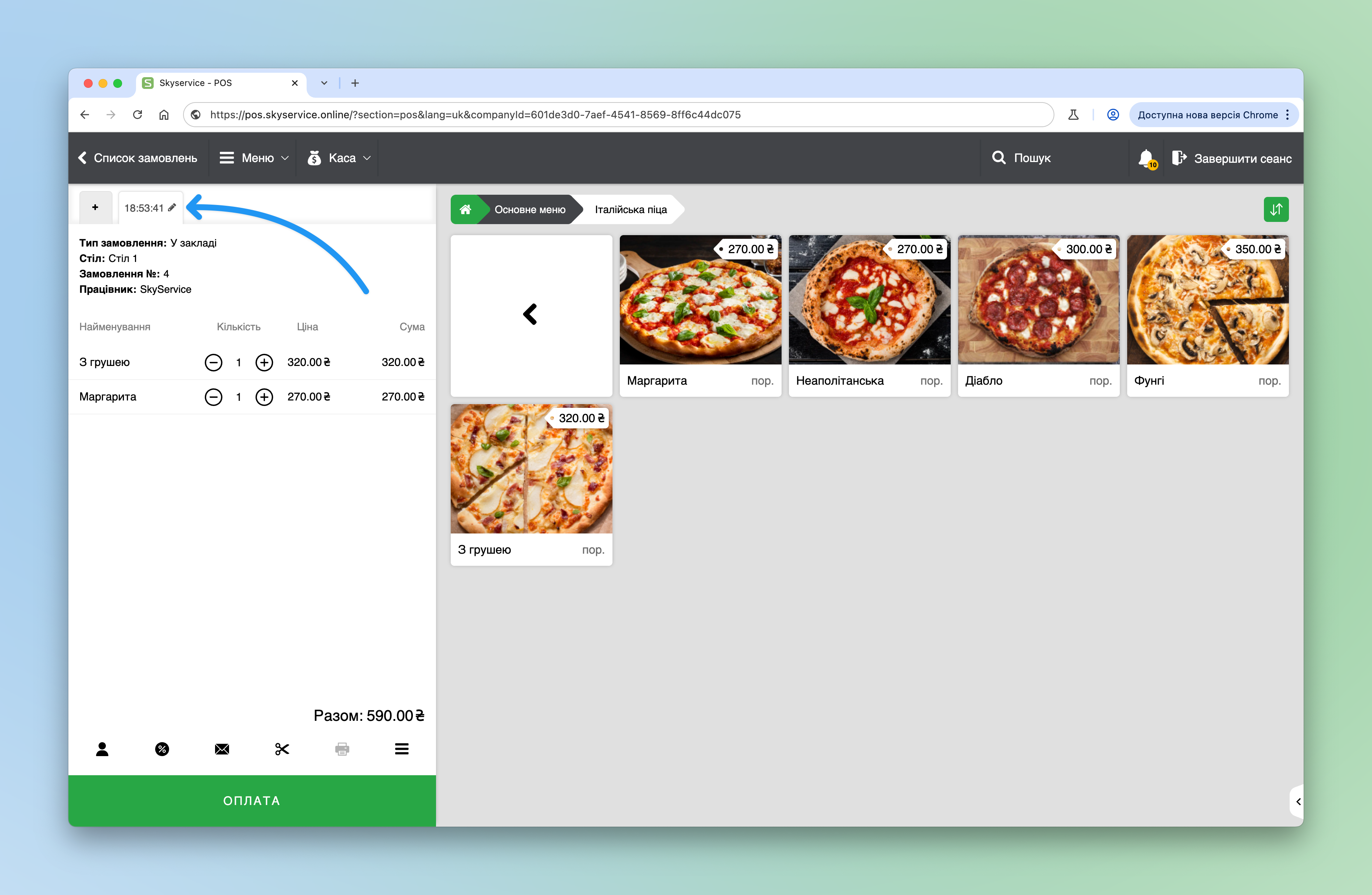 - Коли будете готові віддати/закрити замовлення натисніть Оплата