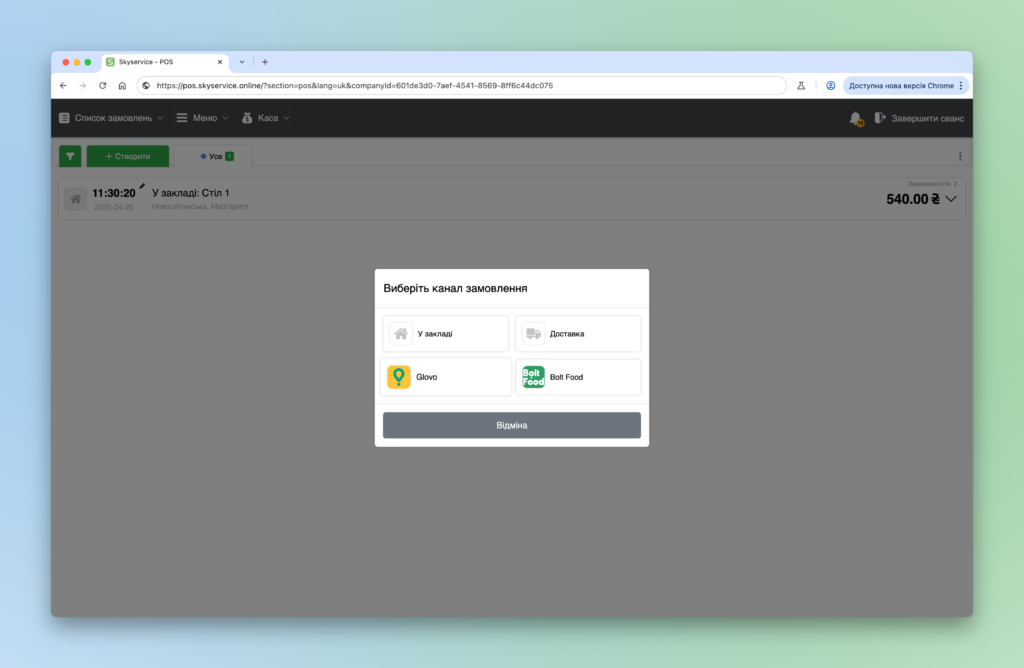 Канали замовлень — це інструмент для керування різними джерелами надходження замовлень у системі. Вони дозволяють визначати, з яких сервісів або доставок надходять замовлення, наприклад Glovo, Bolt Food та інше.