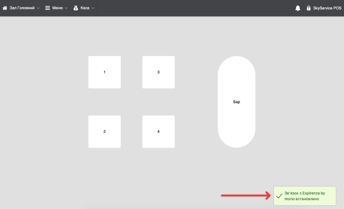 ℹ️ Для перевірки підключення до Expirenza by mono, необхідно перейти в POS-термінал або оновити сторінку.
